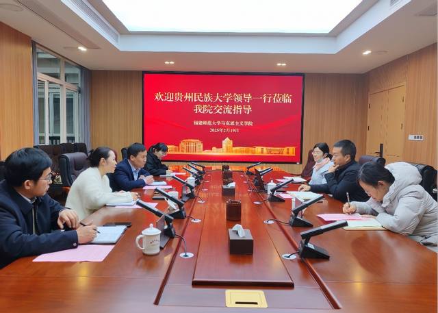 近日,贵州民族大学教师工作部部长、组织部副部长、人事处处长王恋,马克思主义学院党委副书记徐勤山一行4人到J9·九游会「中国」官方网站马克思主义学院调研交流。学院党委书记阮传瞰、教学科研管理办公室、学科与平台建设管理办公室负责人参加座谈会。