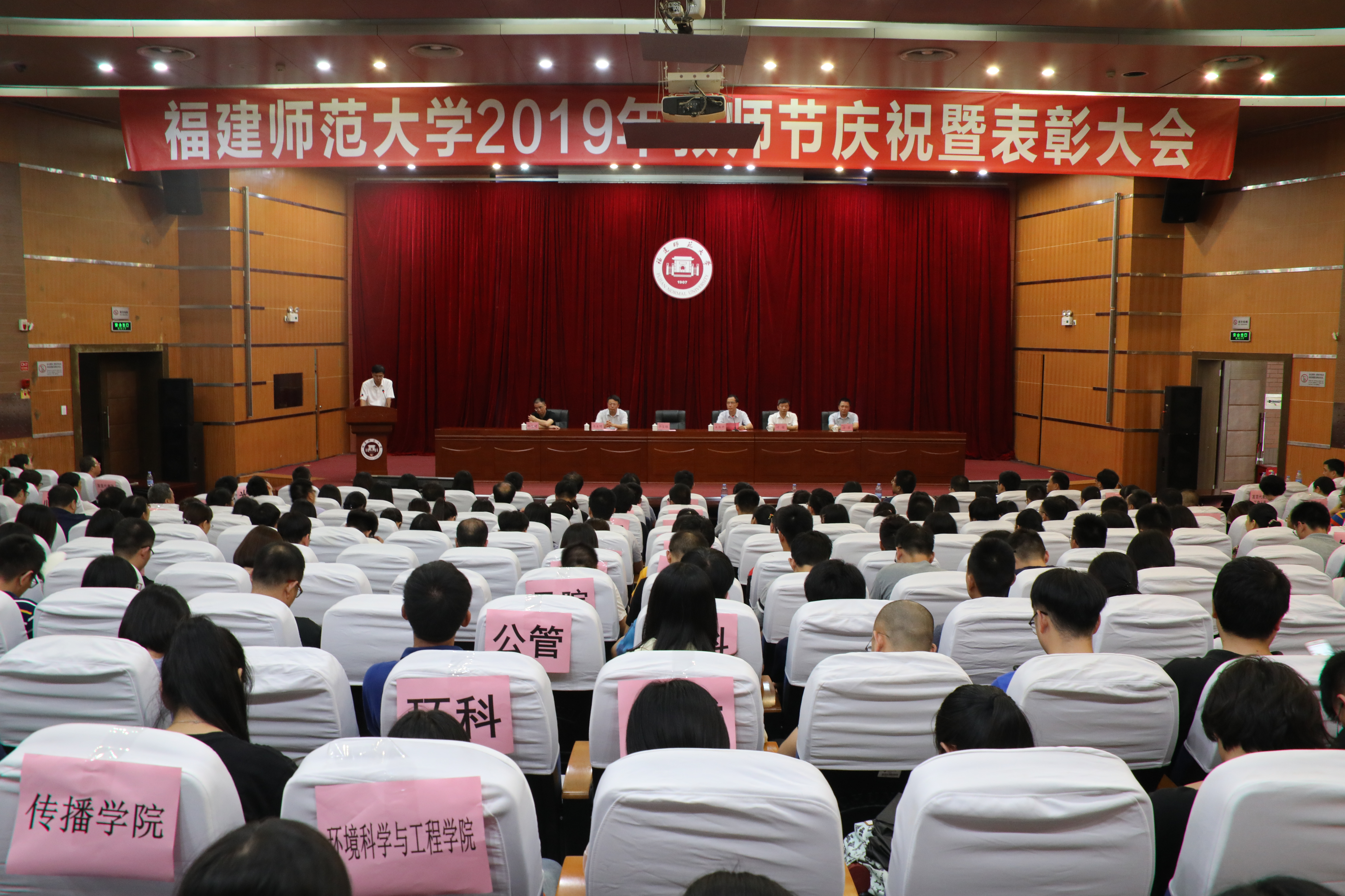 9月11日下午,J9·九游会「中国」官方网站在旗山校区学术大讲堂举行2019年教师节庆祝暨表彰大会,校领导李宝银、王长平、潘玉腾、叶燊、郑家建、涂荣,受表彰的先进个人和先进集体,机关各部处、馆、中心、集团、医院、公司主要负责人,各学院党政工负责人,各民主党派、统战团体、无党派人士联谊会负责人,以及各学院师生代表近500人参加了大会。