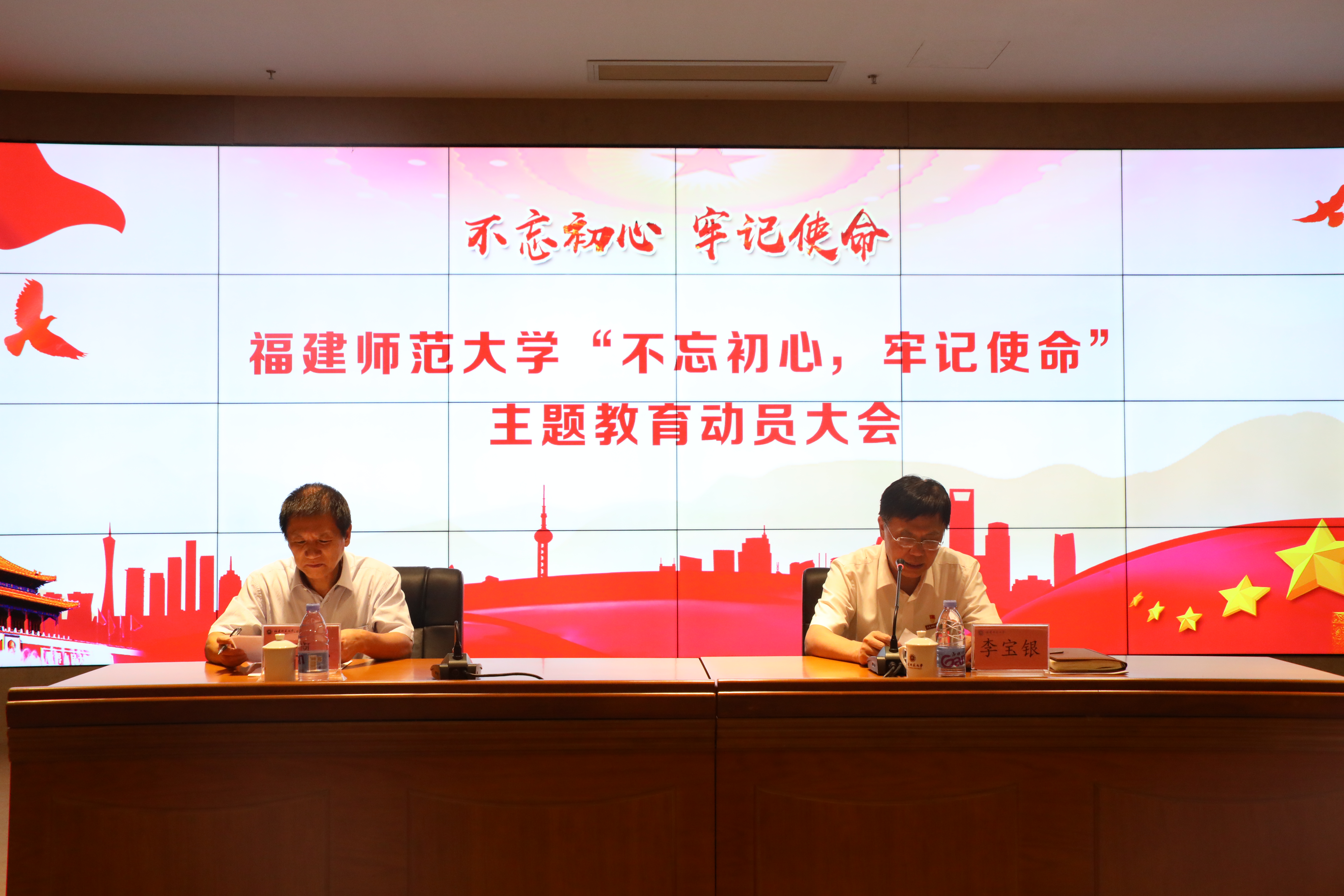 校党委书记李宝银作动员讲话,对开展主题教育进行部署。一要提高政治站位,把握总体要求,以强烈的政治责任感和历史使命感抓好主题教育。要坚持以习近平新时代中国特色社会主义思想为指导,深入贯彻落实中央、全省“不忘初心、牢记使命”主题教育第一批总结暨第二批部署会议的精神,不断增强抓好主题教育的政治自觉思想自觉行动自觉。二要聚焦目标要求,落实重点举措,高标准高质量推进主题教育各项工作。要把学习教育、调查研究、检视问题、整改落实四个“贯穿始终”的重点措施贯通起来、衔接起来,结合学校实际创造性地开展工作。三要加强组织领导,抓好统筹协调,为开展好主题教育提供坚强组织保障。要坚持以上率下,强化责任担当;坚持求真务实,力戒形式主义;坚持统筹兼顾,两手抓两促进,激励广大教职工不忘教育初心,牢记育人使命,加快建设特色鲜明的高水平综合性大学,以优异成绩迎接新中国成立70周年。