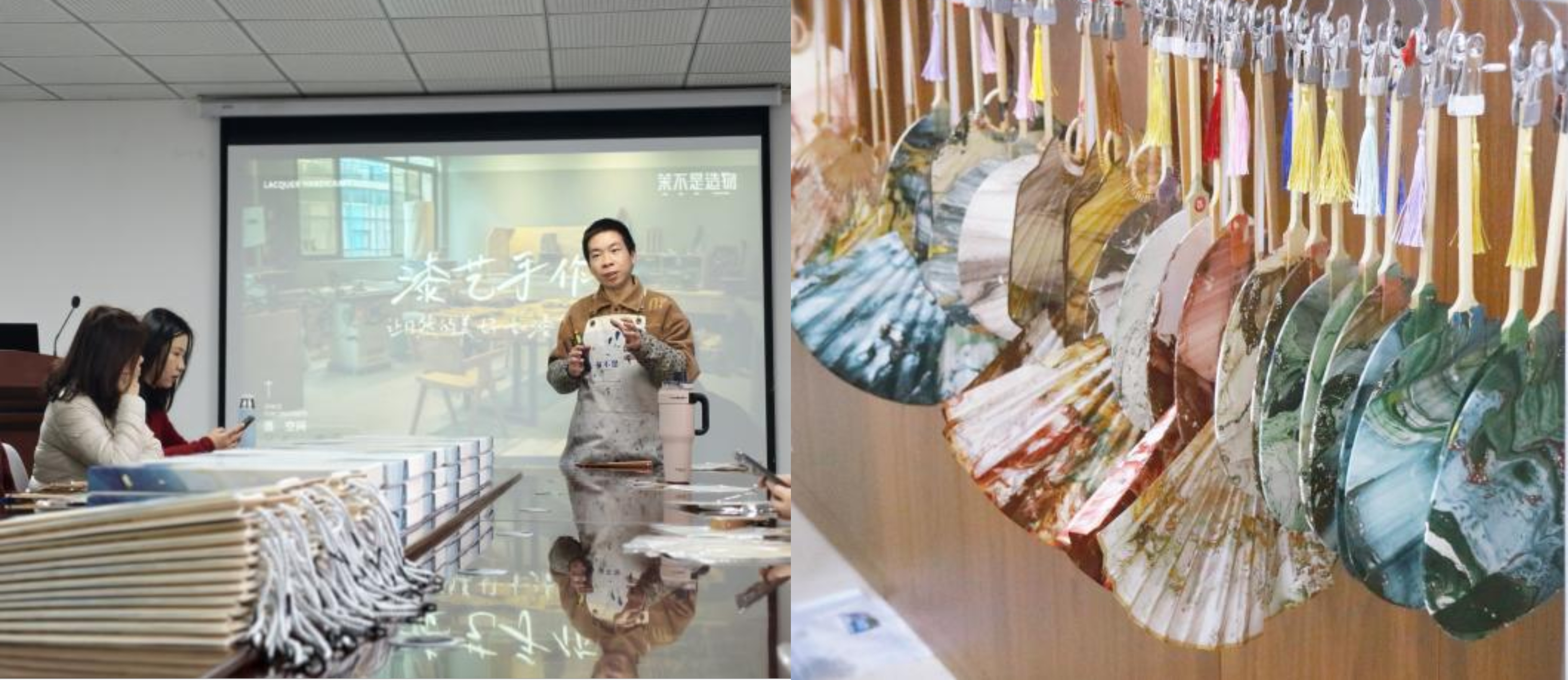 物理与能源学院在学院工会之家举办非遗漆扇制作活动,邀请漆艺工作室专业老师进行现场指导,系统讲解大漆文化的千年脉络和漆扇制作方法,并现场带领老师们体验漆扇制作环节。学院党委书记林玉辉、工会主席郑卫峰及全体女教职工参加活动。