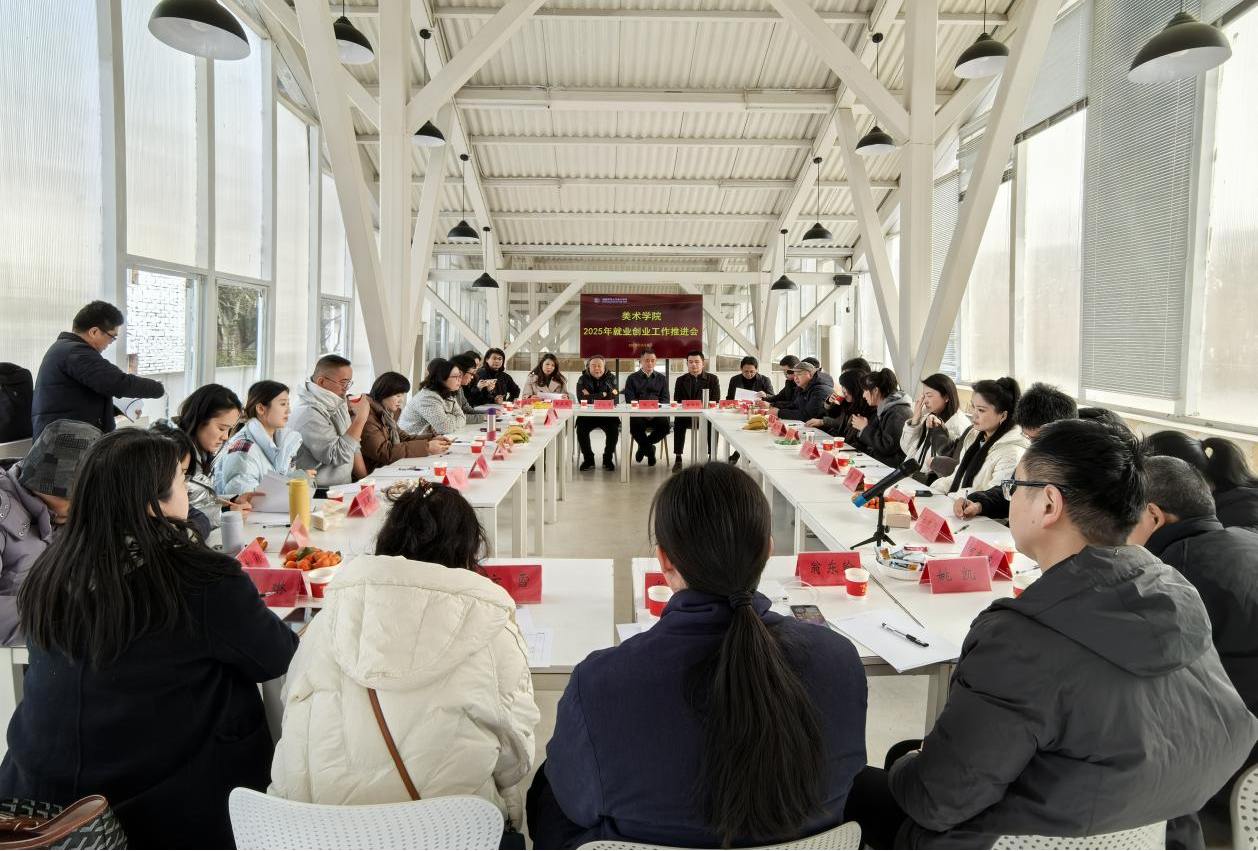 3月8日,美术学院召开2025年就业创业工作推进会,学院党政领导、各教研室主任、学科带头人、专任教师代表及辅导员参加会议。