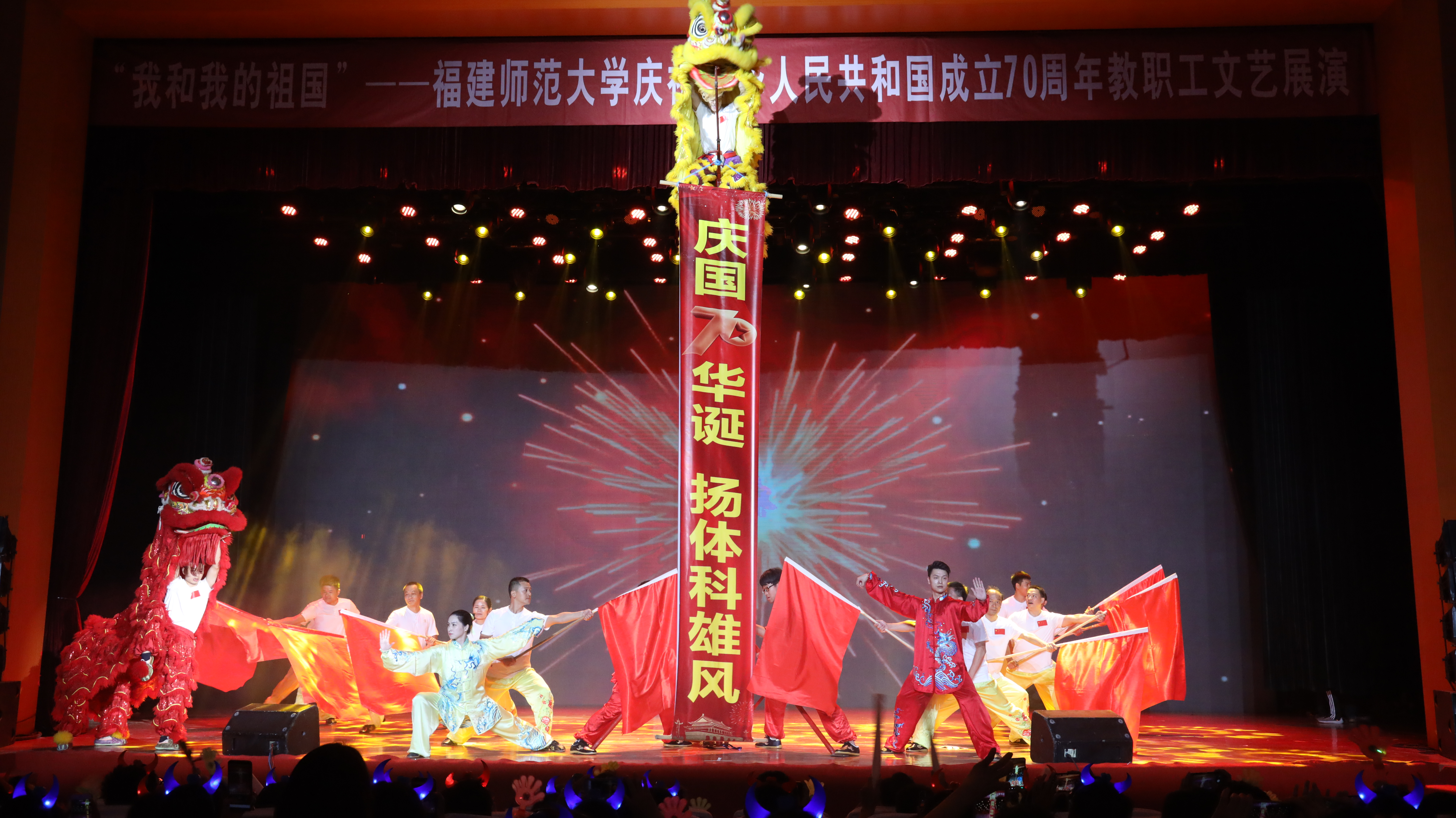演出中,广大教职工用歌舞、朗诵、情景剧等形式多样的作品热情讴歌了中华人民共和国成立70年以来取得的辉煌成就,充分展现了爱党爱国、奋发进取的良好精神风貌,进一步树牢了当好主力军、建功新时代的信念。