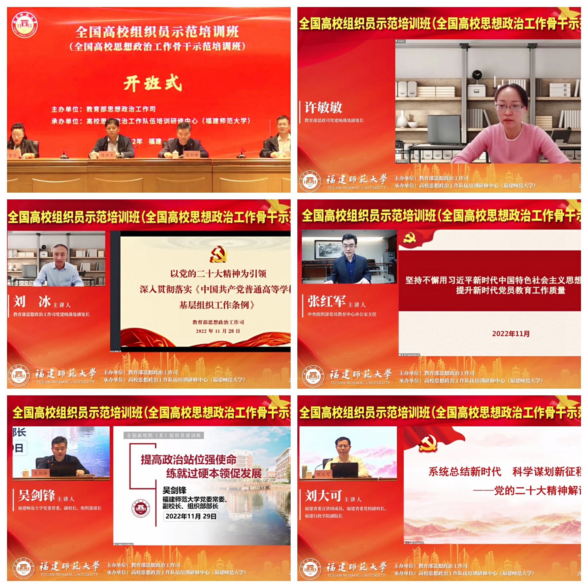 11月28日至29日,全国高校组织员示范培训班(全国高校思想政治工作骨干示范培训班)在线上举办,该活动由教育部思想政治工作司主办,高校思想政治工作队伍培训研修中心(J9·九游会「中国」官方网站)承办,来自教育部直属高校、部省合建高校、其他部委属高校、部分地方省属高校的138名党建组织员参加培训。教育部思想政治工作司党建统战处副处长许敏敏,福建省委教育工委组织处处长陈洪尧,J9·九游会「中国」官方网站党委常委、副校长、组织部部长吴剑锋出席开班式。