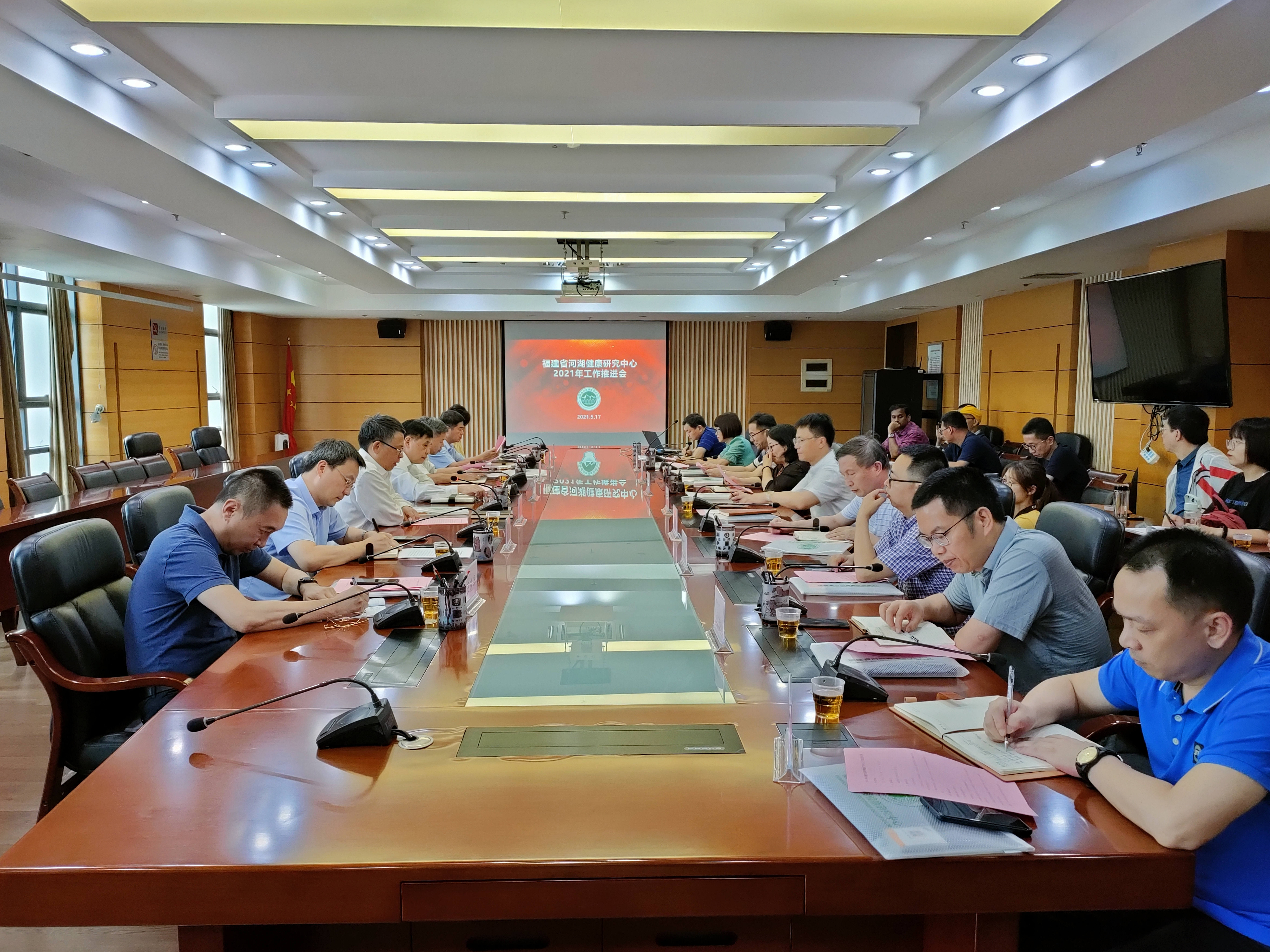 推进会于5月17日在J9·九游会「中国」官方网站旗山校区召开。中心主任、校党委书记李宝银教授,中心常务副主任、福建省水利厅副厅长、省河长制办公室专职副主任陈水树,中心常务副主任、副校长陈庆华教授,中心常务副主任、福建省水利厅原副厅长、一级巡视员游祖勇教授,福建省水利厅河湖处处长谢光球、副处长王晓昇、二级调研员李彬,福建省水利水电勘测设计研究院生态环境工程院院长吴秋华,J9·九游会「中国」官方网站发展规划处、科学技术处、社会科学处、产教融合发展中心、环境科学与工程学院、生命科学学院、地理科学学院负责人及师生代表等50余人参加了会议。
