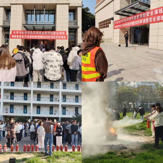 3月19日,化学与材料学院、海峡柔性电子(未来科技)学院联合开展2025年春季科研实验室消防安全演练。实验室与设备管理处副处长吴勇、海峡柔性电子(未来科技)学院副院长覃弦、化学与材料学院院务委员章华桂及师生300余人参加。