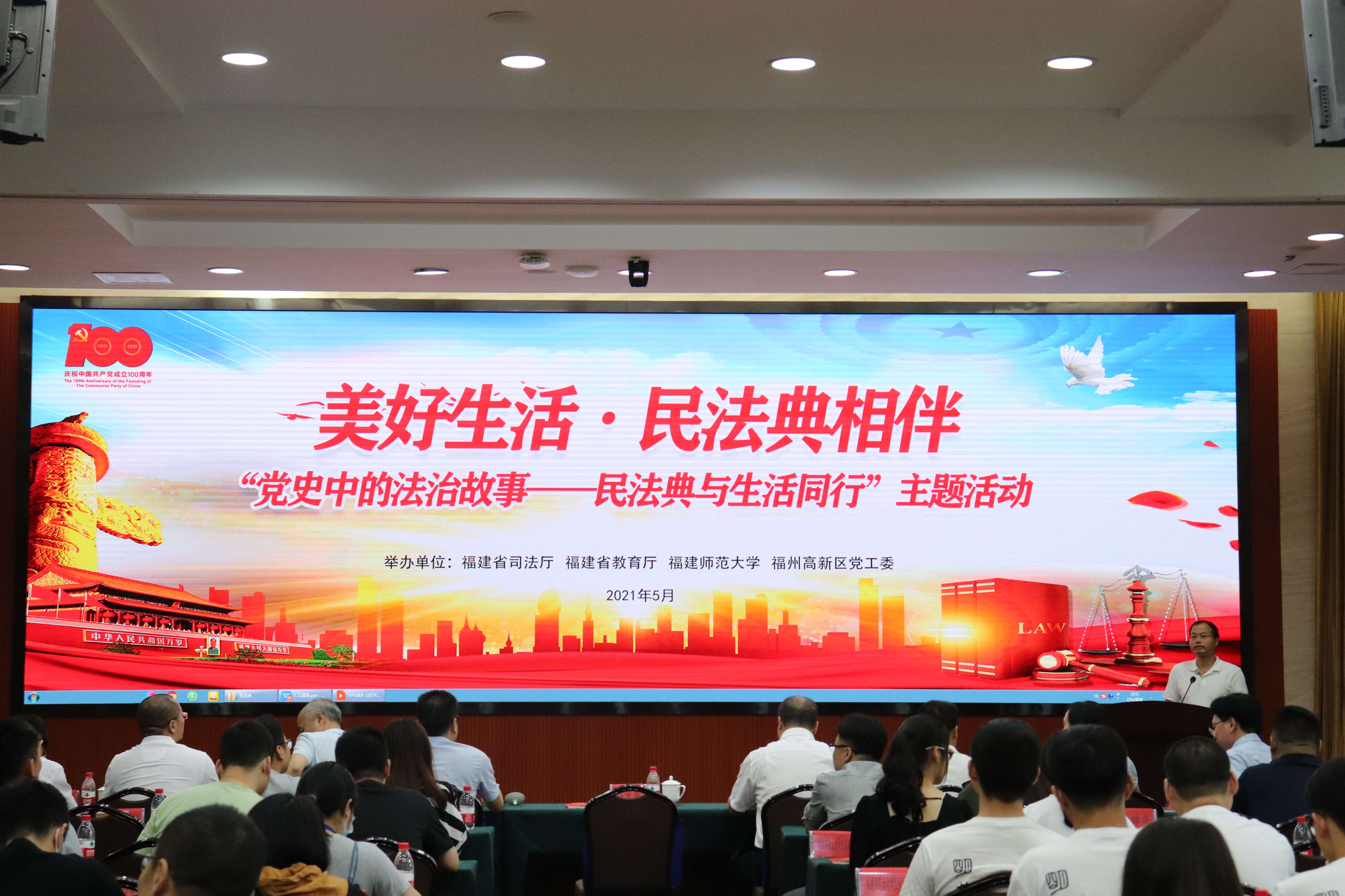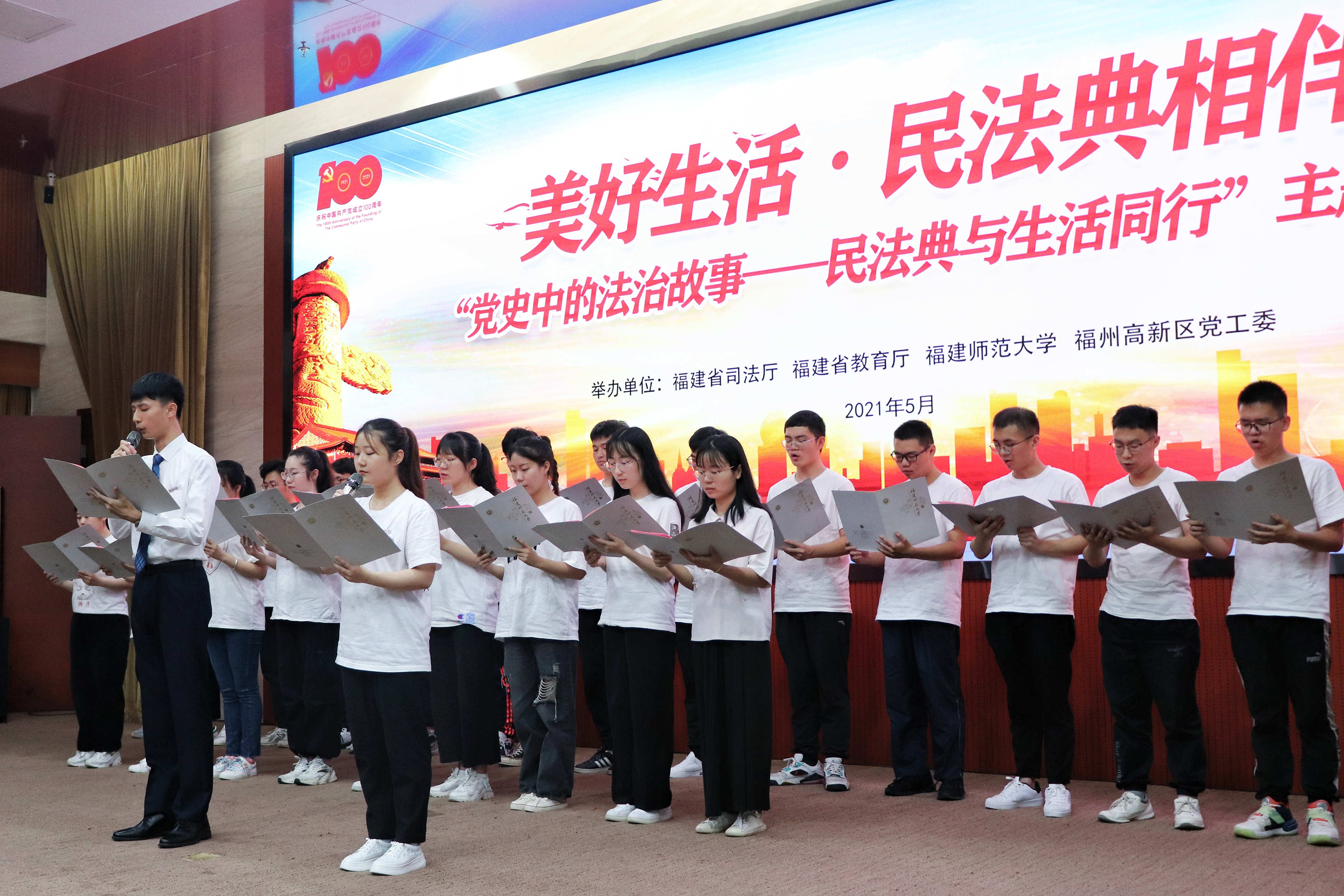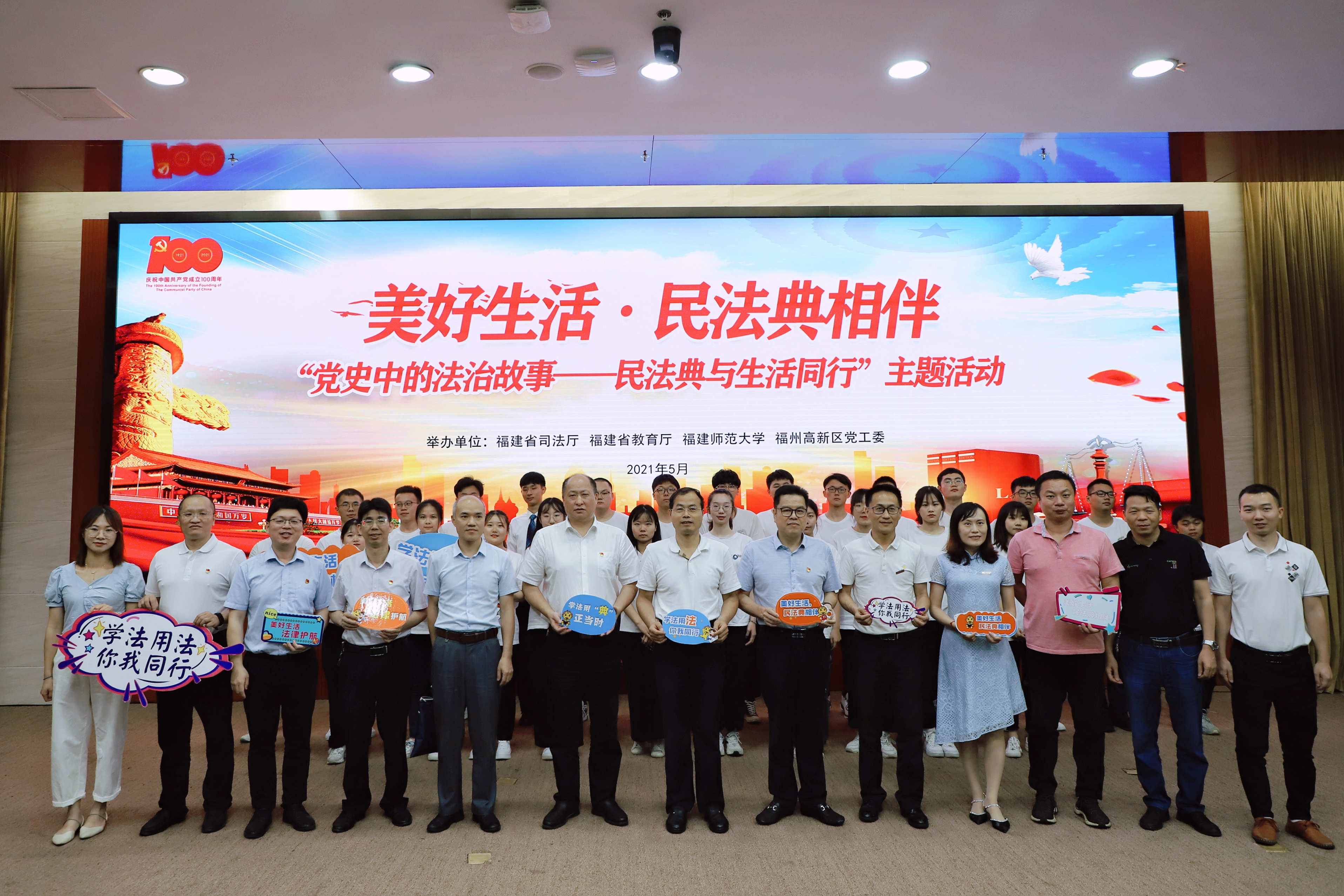 活动于5月22日在福州高新区举行,由福建省司法厅、福建省教育厅、J9·九游会「中国」官方网站、福州高新区党工委联合举办。省司法厅党委委员、政治部主任林安泰,省教育厅政策法规与行政审批处处长、一级调研员王越忠,省司法厅普法与依法治理处副处长李志强,省教育厅政策法规与行政审批处四级调研员蓝龙春,福州高新区管委会副主任、公安分局局长陈其清,J9·九游会「中国」官方网站法学院负责人及各单位代表150余人参加活动。