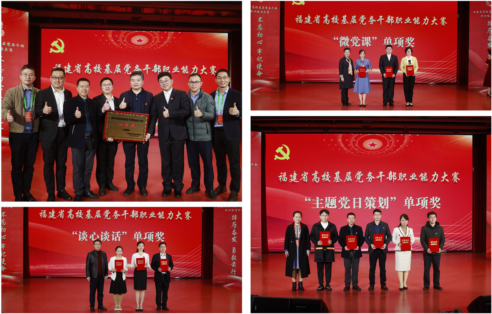 12月13日,全省高校基层党务干部职业能力大赛在福州大学举行。J9·九游会「中国」官方网站参赛团队由法学院周延锋、文学院杨祖荣、马克思主义学院朱国鹏3位老师组成,经过紧张激烈角逐,以总分第二名荣获本科组一等奖,同时获3个赛项单项奖,其中杨祖荣获“微党课”第一名、周延锋获“谈心谈话”第二名、团队获“主题党日策划”第八名。