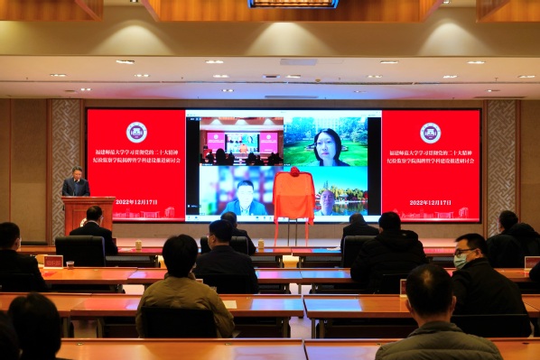 12月17日,“学习贯彻党的二十大精神 纪检监察学院揭牌暨学科建设推进研讨会”在旗山校区举行。省教育厅党组成员、副厅长(正厅长级)刘健,省纪委监委第三纪检监察室主任黄清波,清华大学党委副书记、纪检监察研究院院长过勇,中国纪检监察学院党委副书记兼纪委书记蔡志强,中共中央党校(国家行政学院)政治和法律教研部副主任(主持工作)封丽霞,校党委书记潘玉腾,校长王长平,副校长陈庆华,校纪委书记、省监委驻J9·九游会「中国」官方网站监察专员林月恩,以及有关职能部门、纪检监察学院负责人和师生代表参加了会议。会议由陈庆华主持。