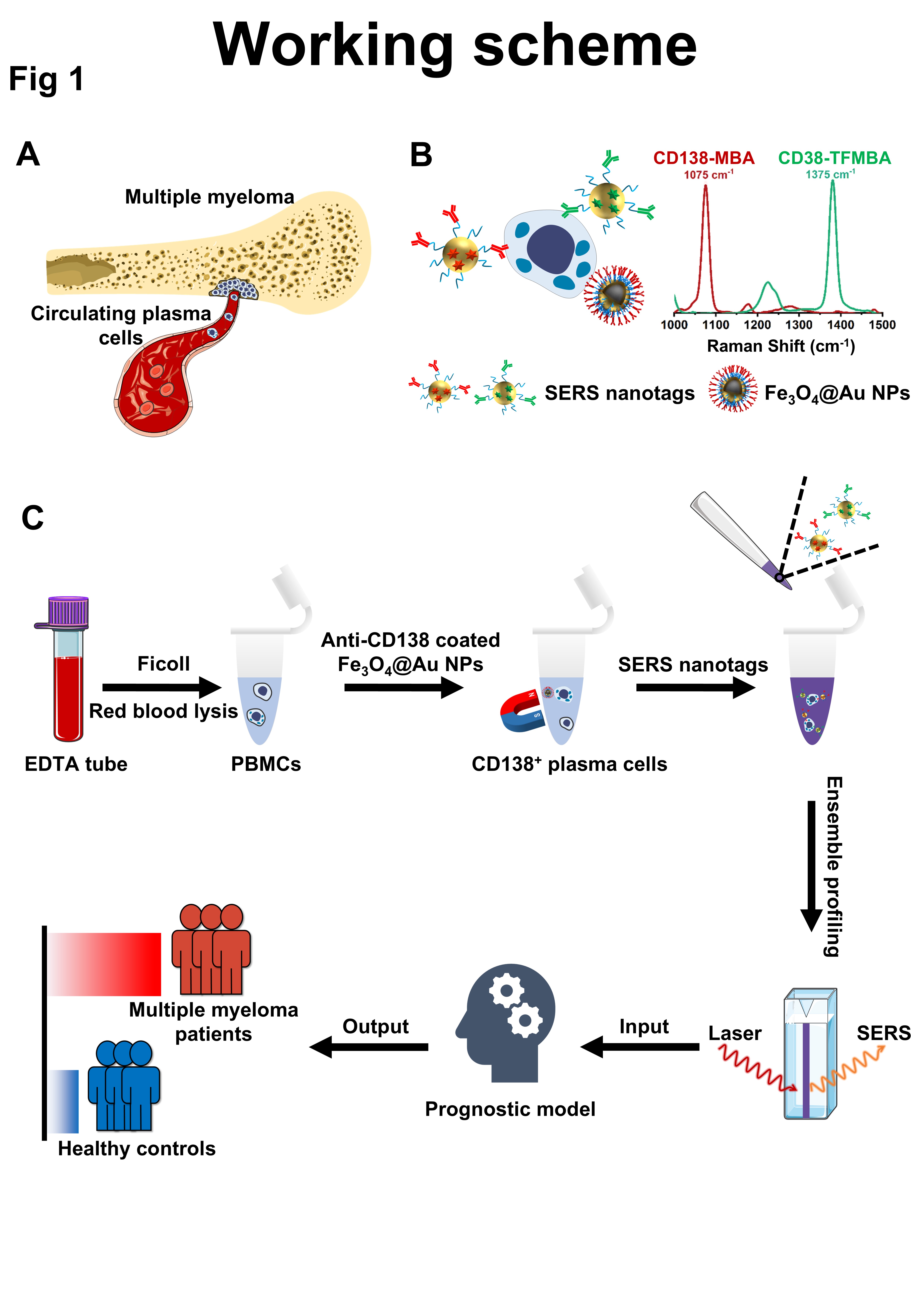 基于SERS技术的多发性骨髓瘤患者外周血循环浆细胞检测示意图