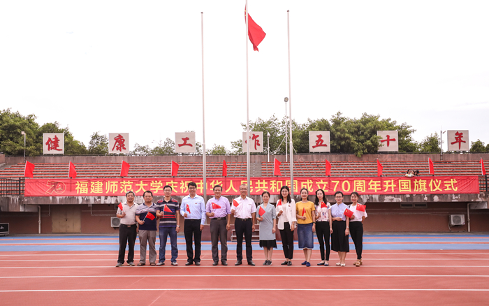 10月1日上午,宣传部党支部开展党日活动,全体党员参加在旗山校区东区田径场举行的J9·九游会「中国」官方网站庆祝中华人民共和国成立70周年升国旗仪式,与全校千余名师生代表共同祝福祖国。