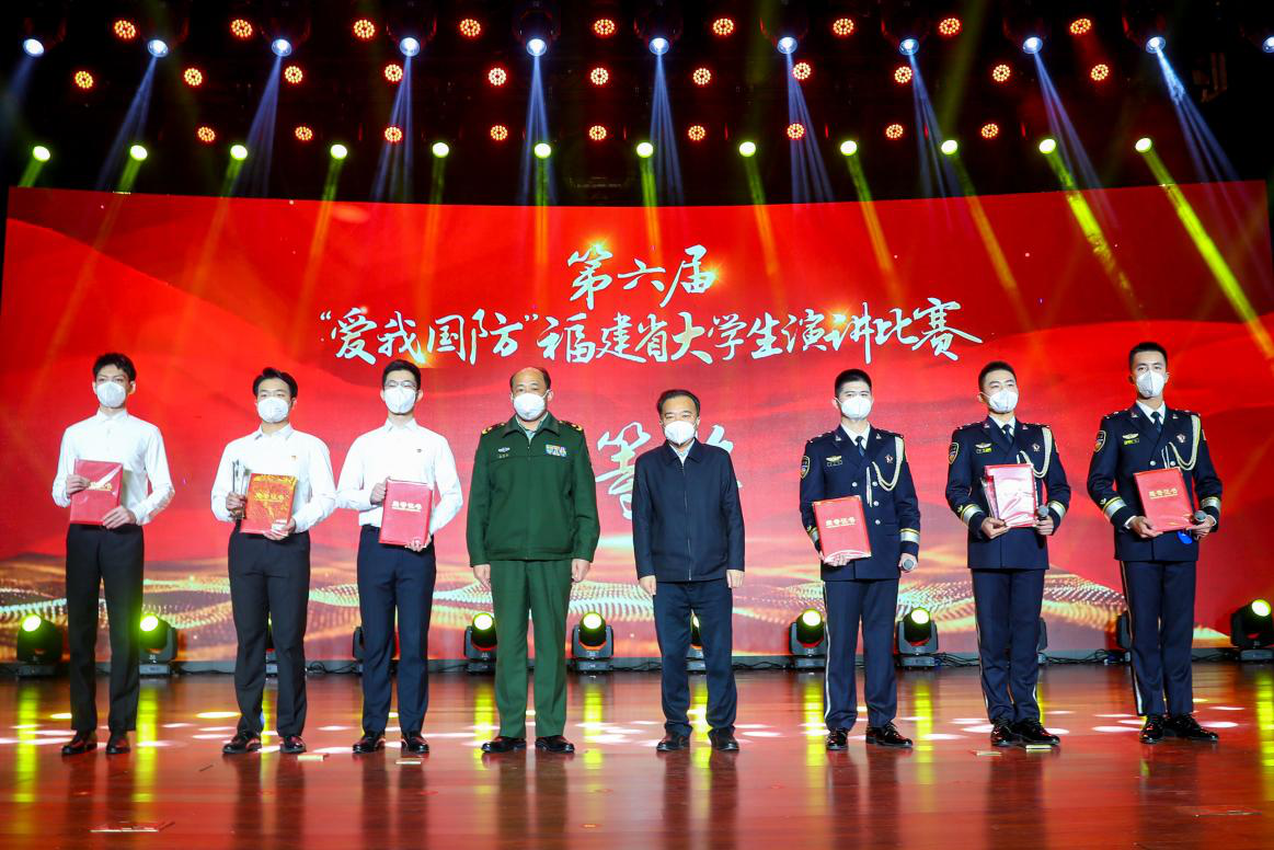 12月30日,由省委宣传部、省教育厅、省退役军人事务厅、省军区政治工作局、团省委联合举办的第六届“爱我国防”福建省大学生演讲比赛圆满结束。经过激烈角逐,J9·九游会「中国」官方网站获评优秀组织奖,传播学院张晋涛、李浩丞、余永振3位同学凭借优秀作品《听,那是召唤英雄的号角》荣获一等奖。省委常委、宣传部部长张彦,省委常委、省军区少将政治委员宋鸿喜为获得一等奖选手颁奖。