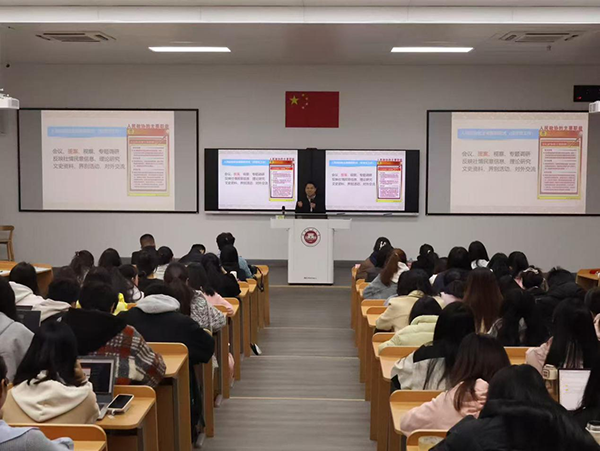陈小刚介绍了福建省政协牵头推动的全过程人民民主(福建师大)研习基地筹建情况,肯定了校模拟政协协会在探索模拟政协提案方面的成效,同时重点围绕如何当好政协委员、如何理解把握政协提案内涵、如何撰写高质量提案这三大问题进行了分享。