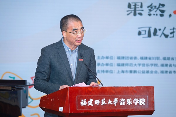 郑家建代表学校致辞,他指出,教育是灵魂的唤醒、心灵的触动,不应只有知识的刻度,更要有心灵的温度。而音乐,作为人类心灵的语言,具有触动灵魂、跨越障碍的力量。大学作为人才培养的摇篮、文化传承创新的阵地、精神文明建设的高地,有责任、有义务发挥学科、人才、文化优势,用音乐搭建更多理解的桥梁,用教育温暖每个需要被看见的生命,让这个世界因为爱和包容变得更加美好。