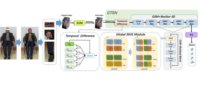 帕金森病(PD)是老年人常见的神经退行性运动障碍。作为PD的典型症状之一,震颤是PD评估中的重要参考指标。然而,震颤的专家评估是一个耗时费力的过程,对PD的医学评估提出了相当大的挑战。团队提出了一个新的全局时差移位深度网络模型(GTSN,Global Temporal-difference Shift Network),仅用智能终端视频便可进行PD震颤的MDS-UPDRS评分。该方案为帕金森病震颤量化评估提供了一种自动,客观和高效的视频智能评估方法。