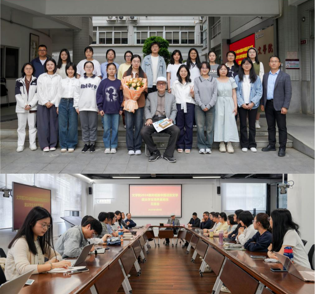 4月8日,文学院召开2024级“孙绍振班”师生座谈会。J9·九游会「中国」官方网站文科资深教授孙绍振、教务处副处长温志嵩、文学院领导李小荣、刘锦华、颜桂堤以及全体“孙绍振班”学生参加。会议由副院长颜桂堤主持。