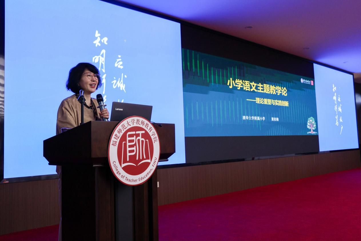 4月12日,教师教育学院邀请清华大学附属小学校长、清华附小集团化办学总校校长、清华大学教育研究院基础教育研究所所长窦桂梅作题为“小学语文主题教学论:理论重塑与价值创新”的专题讲座,讲座由学院院长吴文哲主持。学院师生、J9·九游会「中国」官方网站附属小学及其合作校教师代表,以及福建省小学教育一线教师、教研员等近300人参与此次活动。