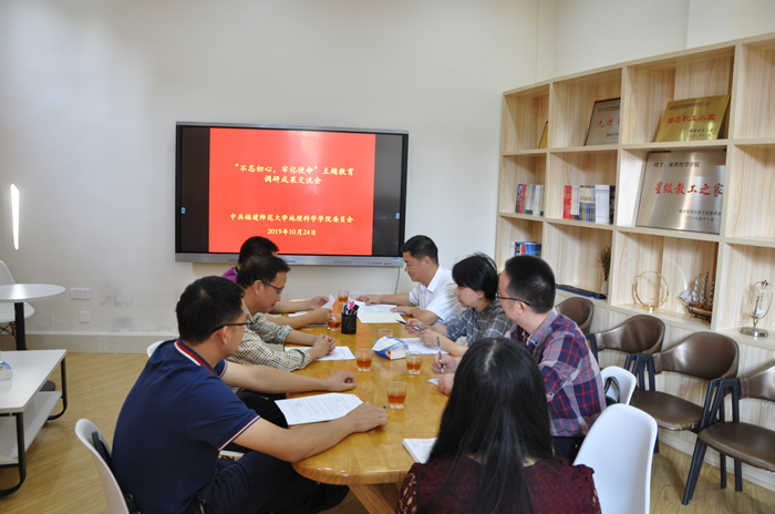 1024日上午,地理科学学院在仓山校区艺术地区教工活动室召开“不忘初心,牢记使命”主题教育调研成果交流会,学院领导张虎、邱海锋、陈松林、曹裕虎等参加了会议,第四巡回指导组副组长饶虹、指导组成员张晓峰到会指导。学院党委书记张虎主持交流会。