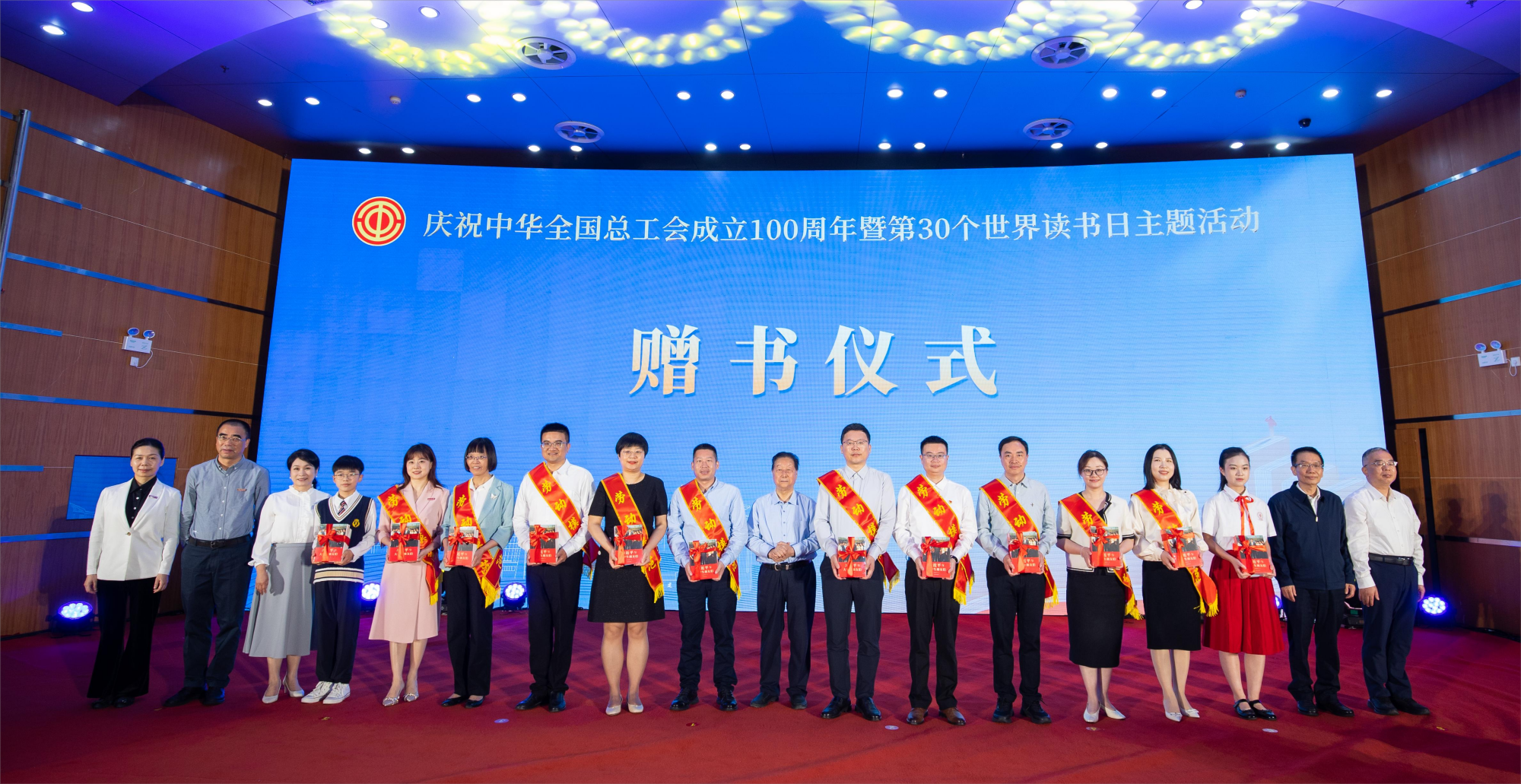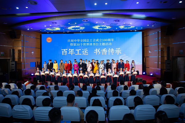 整场活动以“百年工运·书香传承”为主题,分为“序章:百年工运 薪火相传”“回顾百年:工运留痕 书卷有声”“把握当下:青春对话 阅见时代”“展望未来:书香赋能 时代新声”三个篇章,通过艺术演绎与思想对话相结合的方式,生动诠释了阅读与劳动精神的时代共鸣。活动现场,与会领导共同向劳动模范、青年学生赠送《习近平与大学生朋友们》《中国工人运动史》等精选图书。
