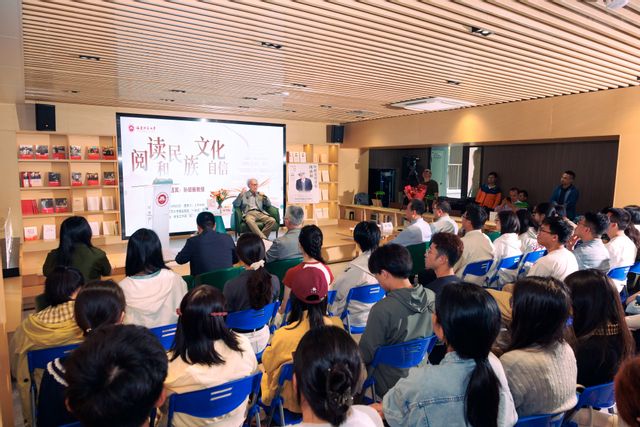 分享会上,孙绍振教授围绕“阅读与民族文化自信”,结合中华民族文化发展历史,融汇古今中外文化现象,深刻阐释了中华民族文化底蕴、文化精神和文化力量。他以丰富的历史文化史料为例,指出当代青年生逢其时,要坚守民族精神坐标,传承中华民族优秀文化基因,呼吁青年学子“中国的文化精神、民族精神、民族独立精神、民族自信心、文化自豪感绝对不能丢”。师生畅谈交流,现场气氛活泼热烈。