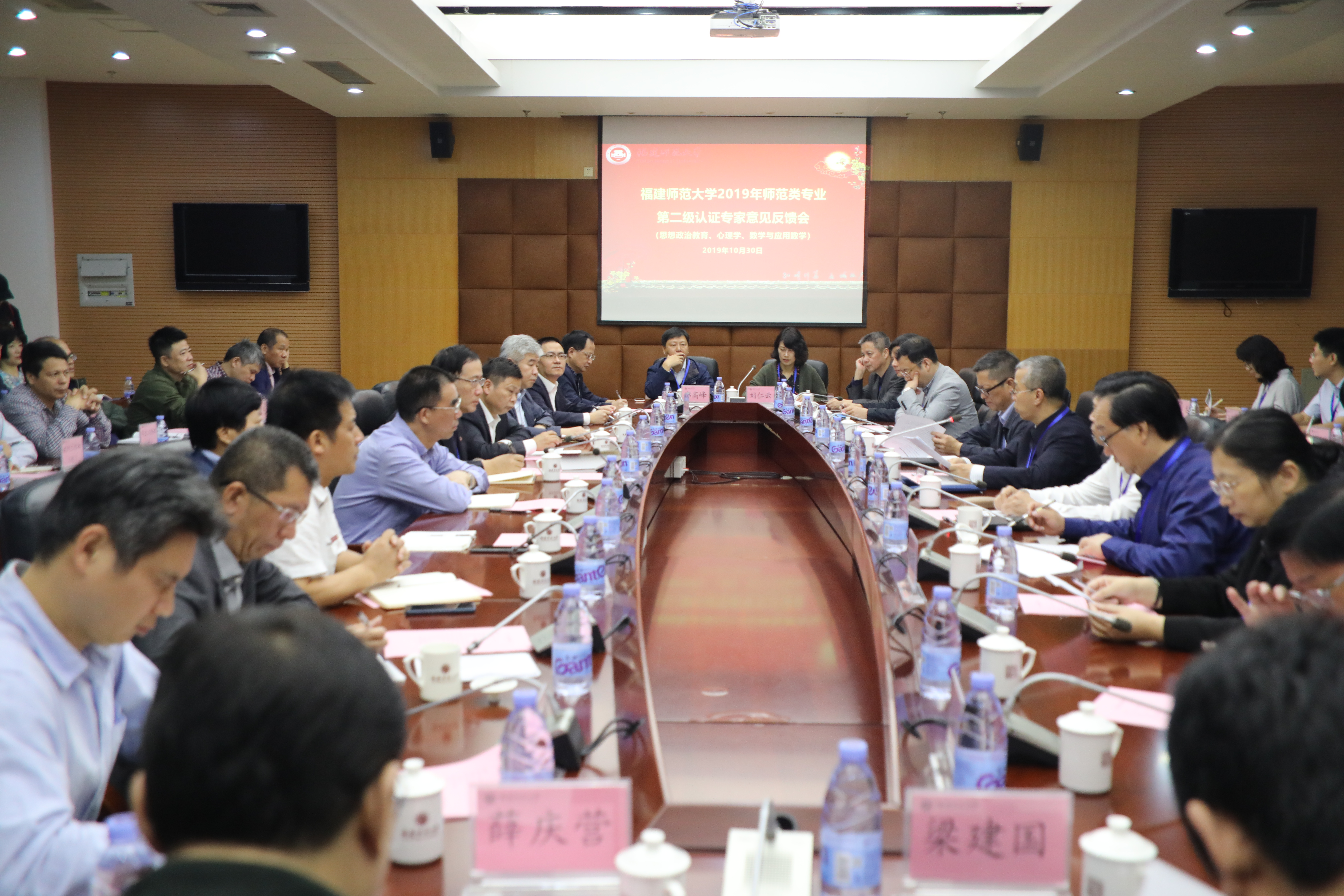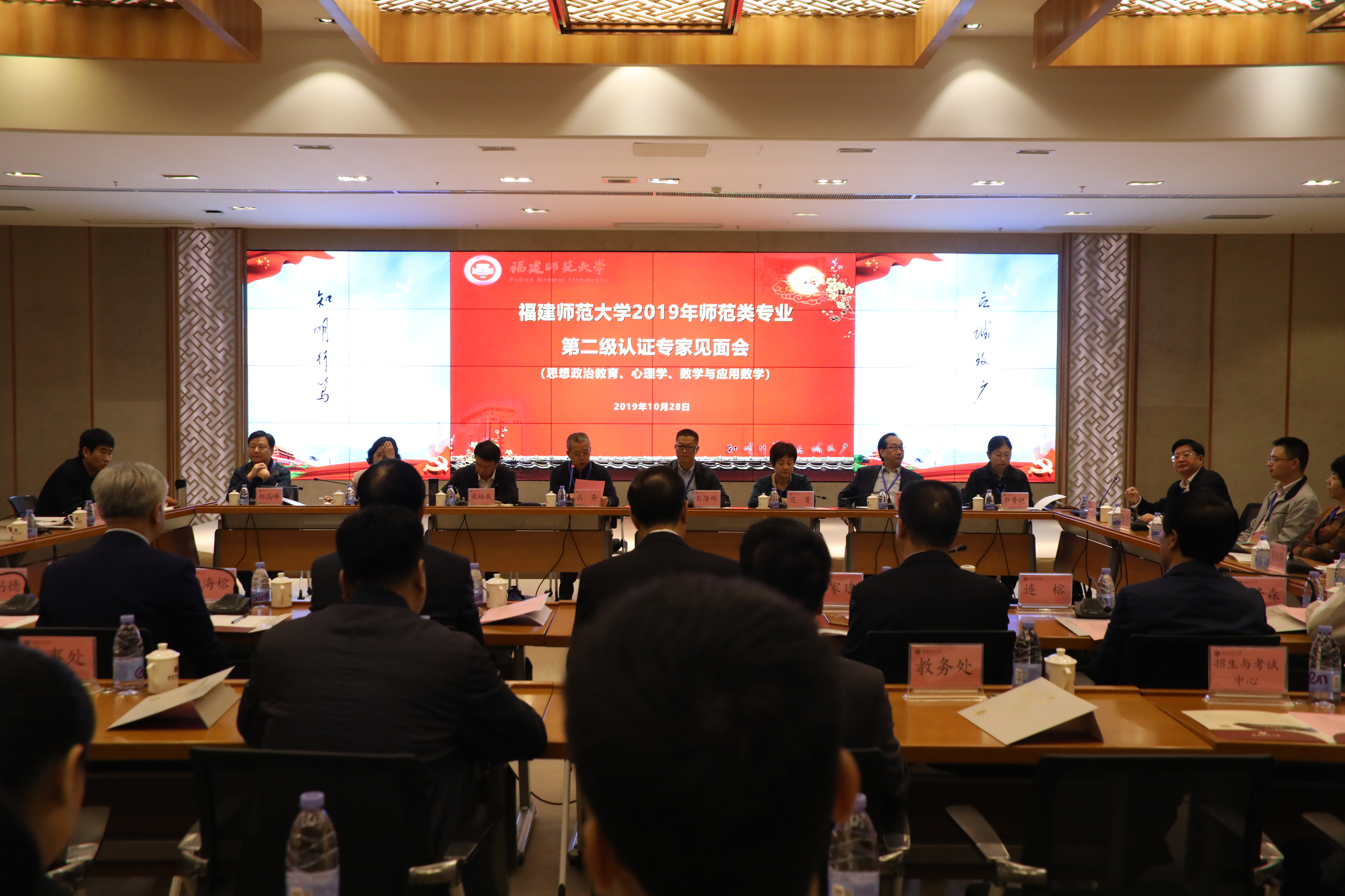 10月28日上午,师范类专业认证见面会在旗山校区宏达厅召开。数学与应用数学认证专家组组长高夯、心理学认证专家组组长梁福成、思想政治教育认证专家组组长彭隆辉,专家组其他成员,省教育评估研究中心副主任范菁,校领导李宝银、王长平、赖海榕、郑家建,学校有关职能部门负责人,认证专业所在学院党政负责人、专业负责人等参加了会议。