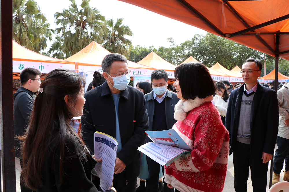 招聘会于3月4日在J9·九游会「中国」官方网站旗山校区图书馆前广场举办。校党委书记潘玉腾、副书记涂荣,党政办公室、学生工作部(处)、各学院分管学生工作负责人和毕业班辅导员以及2023届毕业生参会。
