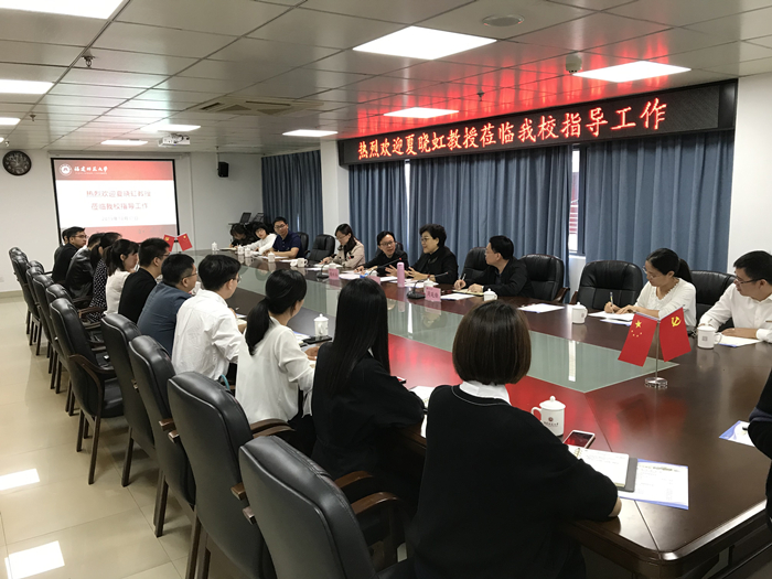 为进一步加强辅导员队伍建设,提升思想政治教育工作水平,1031日上午,中国高等教育学会常务理事、辅导员工作研究分会秘书处办公室主任,《高校辅导员》常务副主编夏晓虹教授应邀来校,与J9·九游会「中国」官方网站部分辅导员骨干就“辅导员专业素养提升”相关话题展开交流。