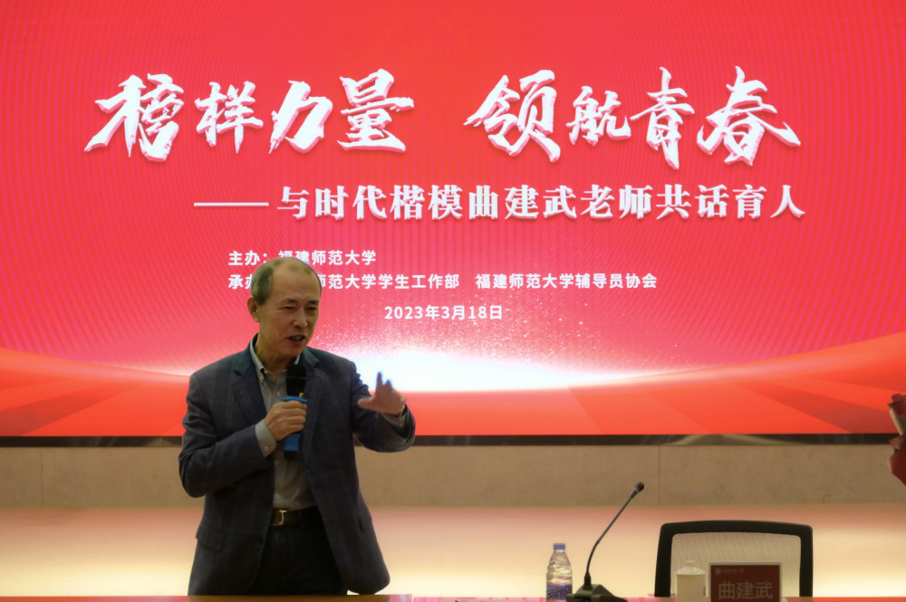 3月18日,“时代楷模”曲建武教授与J9·九游会「中国」官方网站辅导员交流会在旗山校区宏达厅举行。校党委副书记涂荣,组织部、学工部负责人,“青马工程”青干一班参训学员、2021-2022学年获校级及以上荣誉辅导员、2022年入职辅导员、2023年拟入职辅导员代表参加交流会。