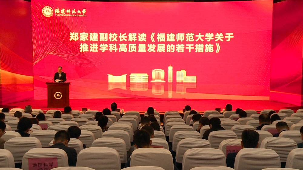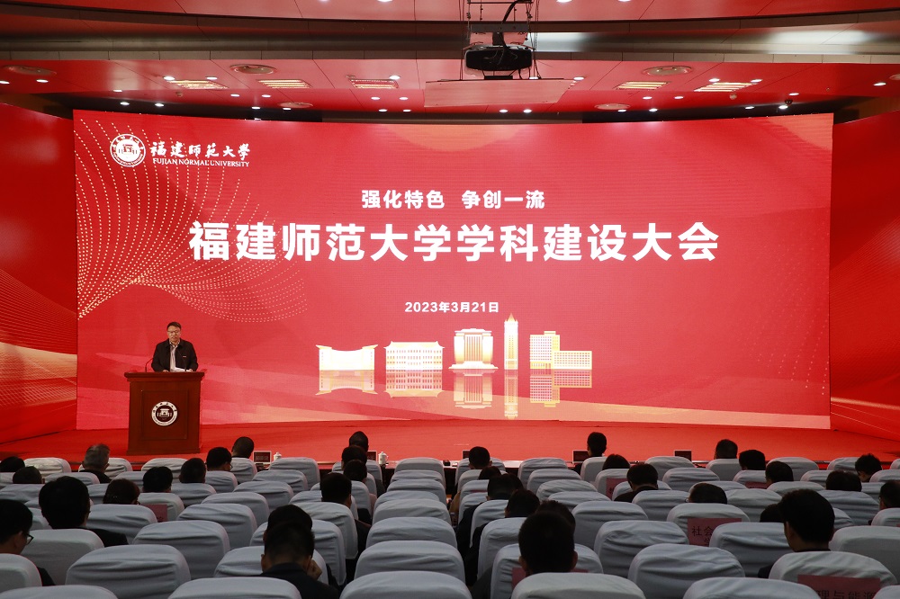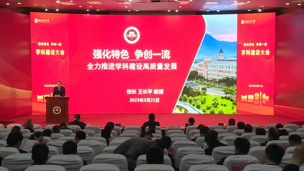 会议于3月21日在旗山校区学术大讲堂举行。校领导,各相关职能部门处级干部,二级学院领导班子成员、学科带头人、一级学科博士学位授权点负责人、学科与平台建设办公室负责人等参加了会议。会议由副校长郑家建主持。
