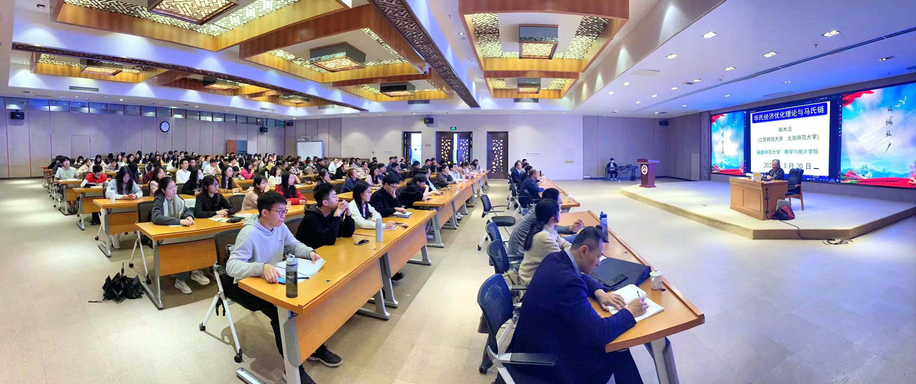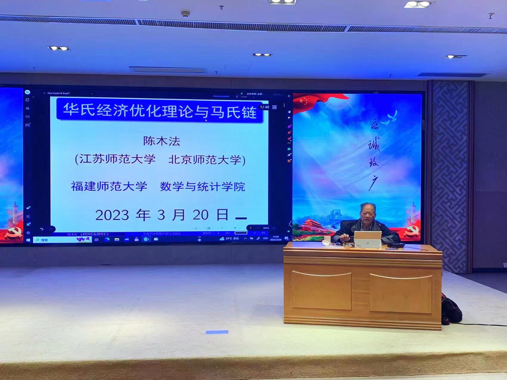 3月20日,中国科学院院士、发展中国家科学院院士、美国数学会Fellow、江苏师范大学数学研究院院长、北京师范大学数学学院教授陈木法应邀在J9·九游会「中国」官方网站旗山校区宏达厅作题为《华罗庚经济优化理论与马氏链》的讲座。讲座由校长王长平主持。