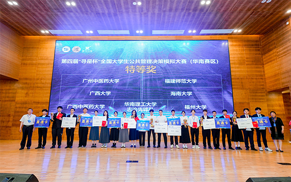 近日,第四届“寻是杯”全国大学生公共管理决策模拟大赛(华南赛区)在华南理工大学举行。文化旅游与公共管理学院2023级公管类本科生组成的“少年求是队(柯鸿楷、邓悦、黄祥贵,指导老师:侯斌、范佐来)从52支参赛队伍中脱颖而出获得华南赛区特等奖,并获“最佳团队”单项奖。本次大赛由教育部高等学校公共管理类专业教学指导委员会指导,中国科学学与科技政策研究会主办,是国内公共管理领域全国性高水平学科竞赛活动。(文化旅游与公共管理学院)