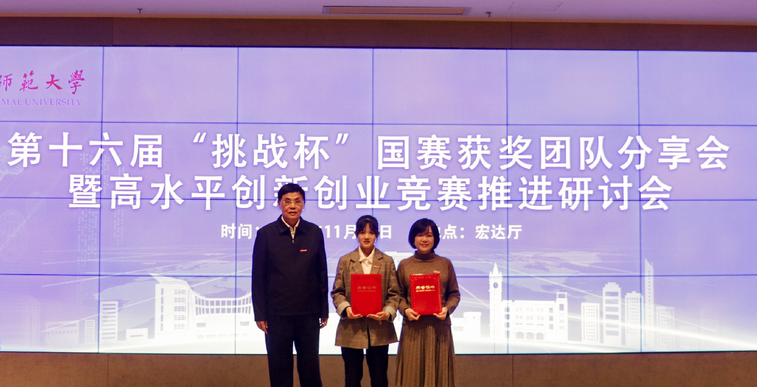 会上,校纪委书记黄清波宣读了学校对获奖团队的表彰决定;黄清波、赖海榕为获奖团队指导教师和学生代表颁发校长嘉奖令;李宝银为特等奖指导老师代表和学生代表颁发高端成果奖励金和奖学金。获奖团队学生代表郑青青、获奖团队指导教师代表祁新华、获奖团队学院领导代表黄宁及竞赛牵头部门校团委负责人戴少娟进行了主题发言,相关部处负责人就J9·九游会「中国」官方网站高水平创新创业竞赛推进工作进行了研讨交流。