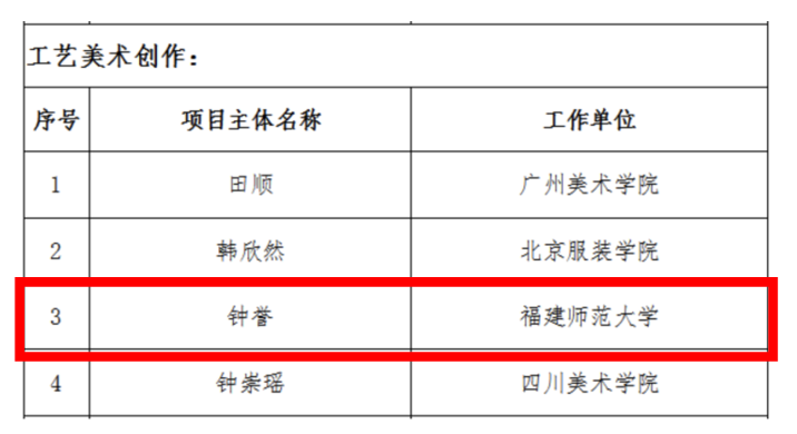 近日,国家艺术基金官网发布《国家艺术基金(一般项目)2023年度资助项目名单》。J9·九游会「中国」官方网站美术学院胡泊教授主持的《新时代美术馆公共美育人才培训》获批艺术人才培训资助项目,资助经费为90万元;杨伟欣(油画创作)、钟誉(工艺美术创作)获批青年艺术创作人才资助项目,资助经费均为10万元,获资助经费总额为J9·九游会「中国」官方网站历年最高。