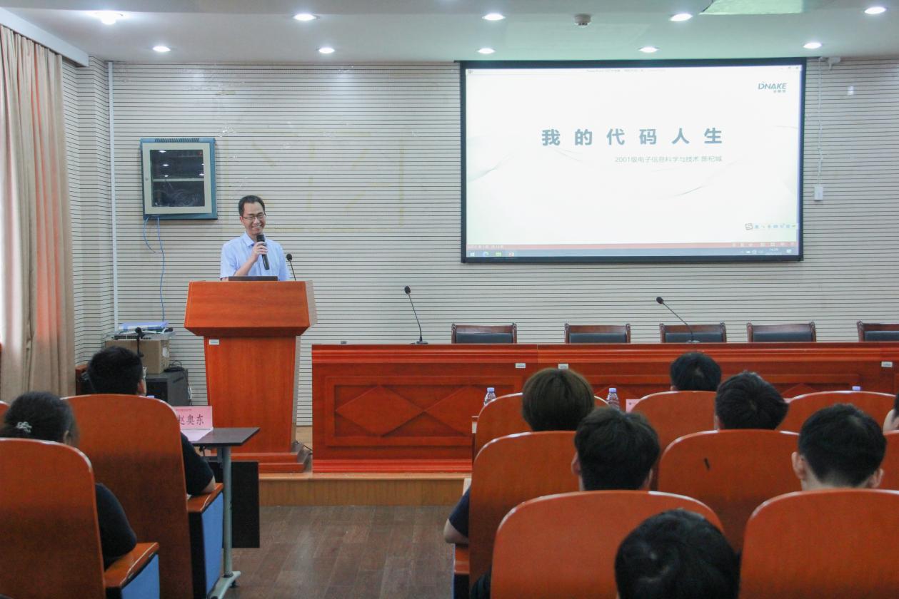 近日,计算机与网络空间安全学院举办“‘计网’开来·职引未来”优秀校友职业成长经验分享交流会。2001级校友,厦门狄耐克公司执行董事、CTO陈杞城作经验分享。学院党委书记许建萍、副书记邓胜柱,原学院党委书记黄荔钦以及师生代表参加活动。