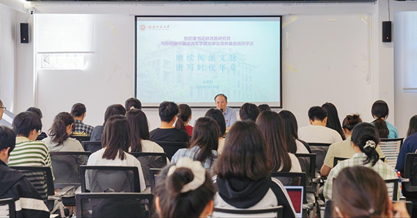 林月恩与同学们一道学习了习近平文化思想,强调要推动中华优秀传统文化创造性转化和创新性发展,坚定文化自信,自觉做中华优秀传统文化的传承者;要扎根社会实践,自觉做新时代人民生活的记录者;要勇攀文学高峰,自觉做社会主义核心价值观的践行者,在以文立心上“知重负重”,在以文载道上“创新创造”,在以文化人上“出圈出彩”。