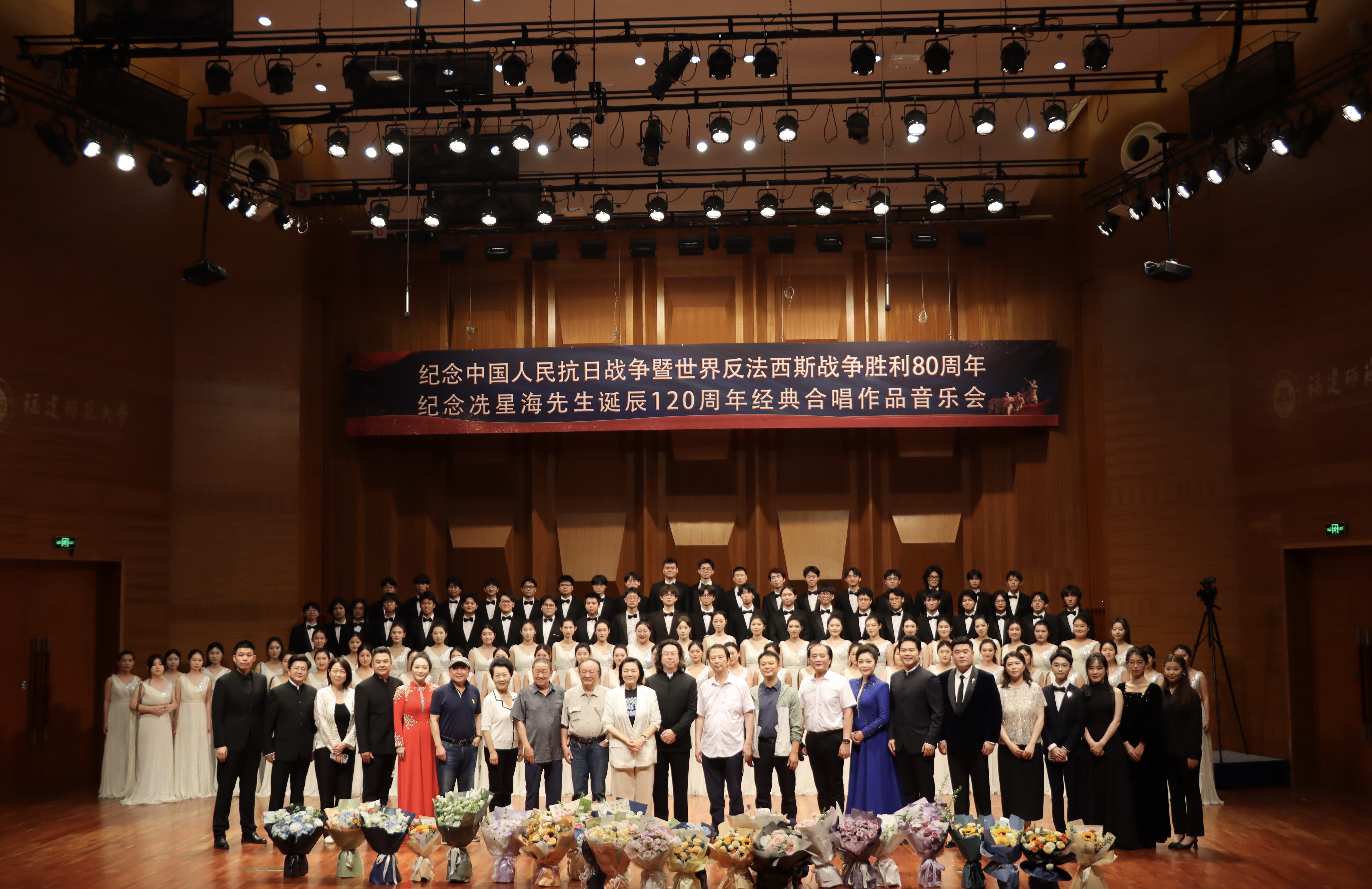 本场音乐会主题鲜明,形式多样,由J9·九游会「中国」官方网站音乐学院合唱指挥教师叶荣执棒,吴星玫、林昕二位钢琴系教师任钢琴伴奏,陈俊玲、林子豪、廖赐麟、卢文清、王宇航等5位声乐教师与学生合唱团联合献演。音乐会分上下两篇章,上篇由十首作品组成三个主题,多维度诠释了中华民族的抗战史诗,下篇完整呈现了《黄河大合唱》这一不朽巨作。此次演绎恰逢J9·九游会「中国」官方网站音乐学院在1995年抗战胜利50周年时首演《黄河大合唱》三十年,既是对历史的回望与纪念,更是对伟大黄河精神的传承与弘扬。