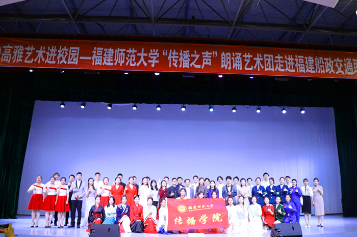 11月27日下午,福建省高雅艺术进校园——传播学院“传播之声”朗诵艺术团走进福建船政交通职业学院朗诵艺术活动在该校室内体育馆举行。传播学院党委书记刘舒平以及两校师生500余人共同观看了演出。