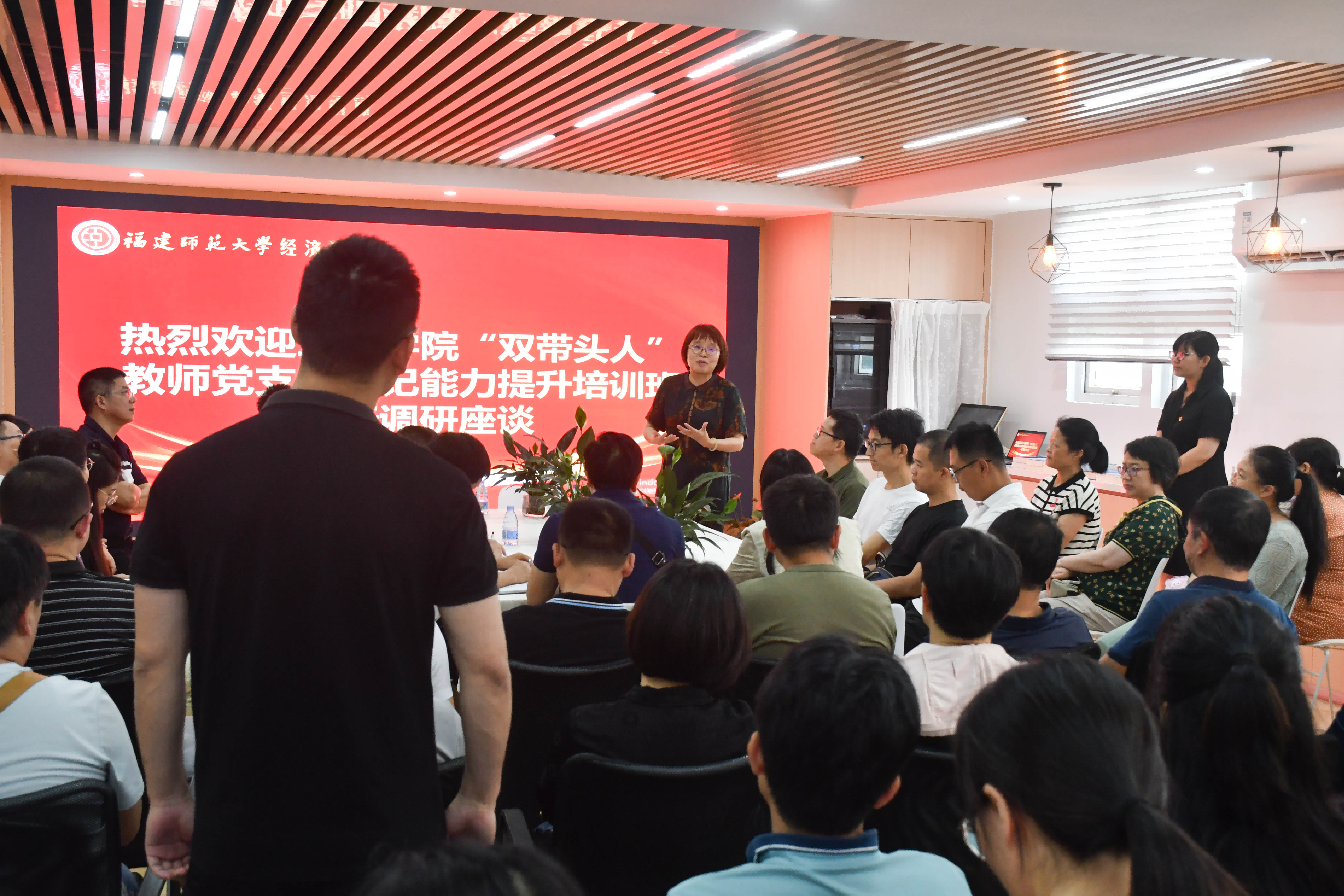 6月12日下午,三明学院“双带头人”教师党支部书记能力提升培训班成员到经济学院交流座谈。经济学院黄瑾院长、李军军教授、白华副教授等参加座谈。