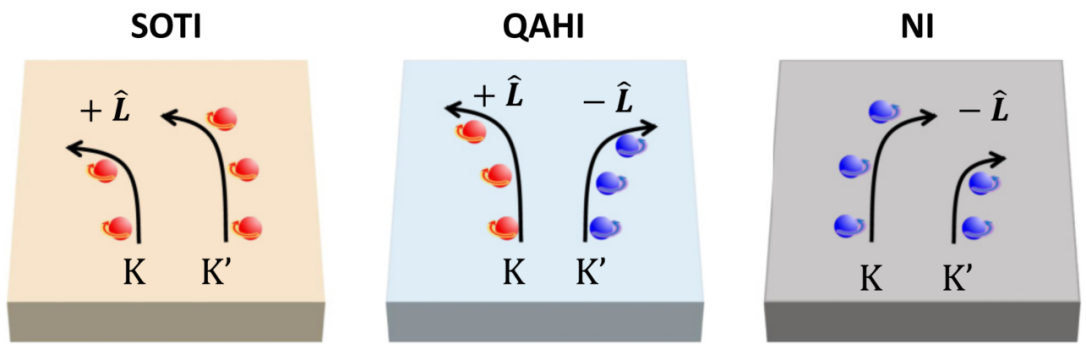 不同绝缘相对应的轨道谷霍尔效应示意图