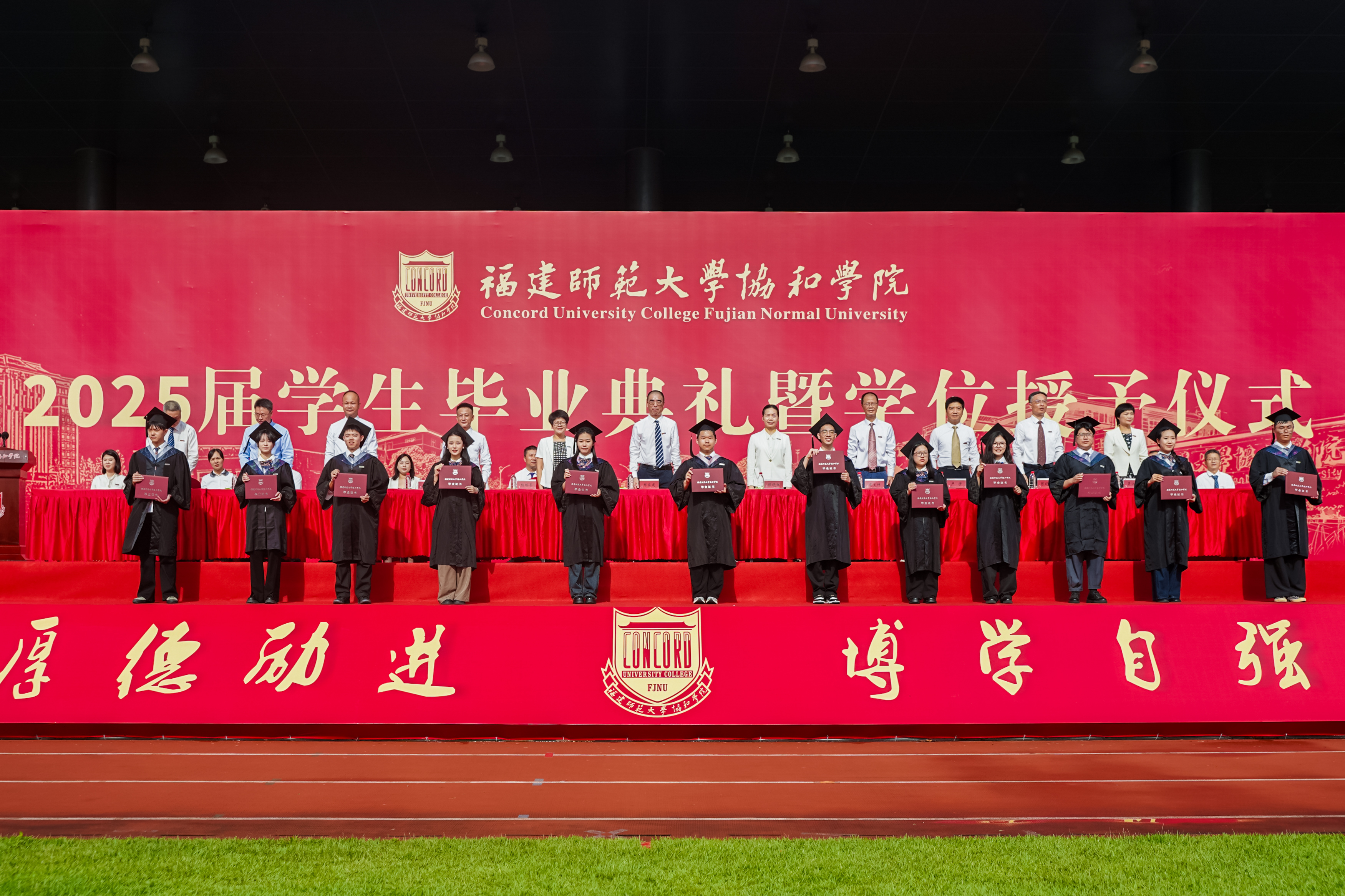 仪式于6月16日在协和田径场隆重举行,校领导郑家建、陈晓红,协和学院董事会、监事会成员,协和学院党政领导班子、各系部负责人、教师代表以及全体2025届毕业班辅导员、毕业生等参加了典礼。典礼由协和学院党委常务副书记陈林男主持。