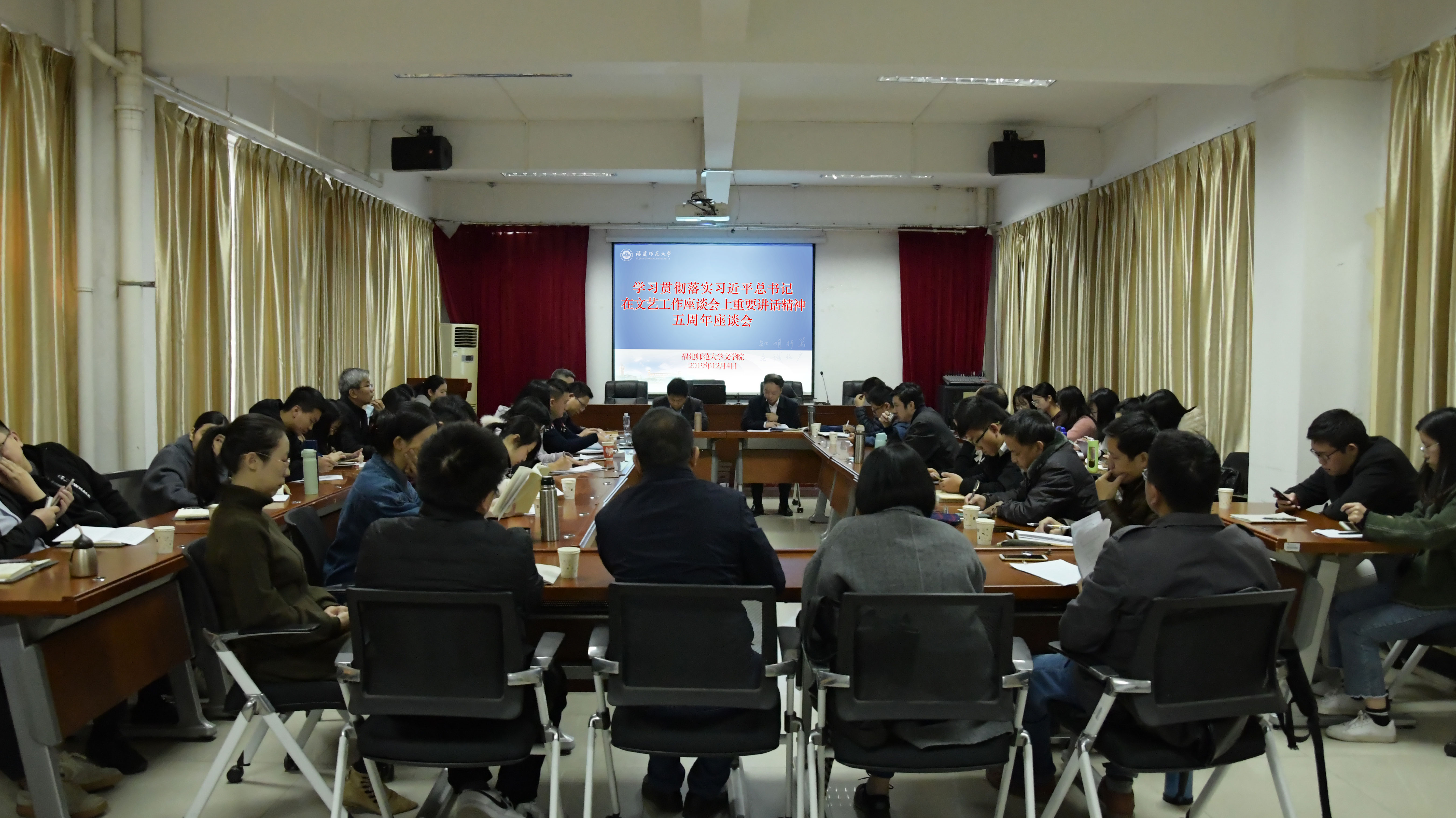 为学习贯彻落实习近平新时代中国特色社会主义思想,在习近平总书记文艺工作座谈会重要讲话发表五周年之际,J9·九游会「中国」官方网站文学院召开学习贯彻落实习近平总书记在文艺工作座谈会上重要讲话精神五周年座谈会。福建省社科院副院长刘小新研究员应邀出席座谈会并作专题报告,学院党委书记李建华主持座谈会。学院党政班子、支部书记、教研室负责人,教师、学生代表参加座谈会,并从各自研究领域和工作实践发言交流,分享学习贯彻总书记讲话精神心得和实践经验,以期推动文艺研究和文学创作再登高峰。