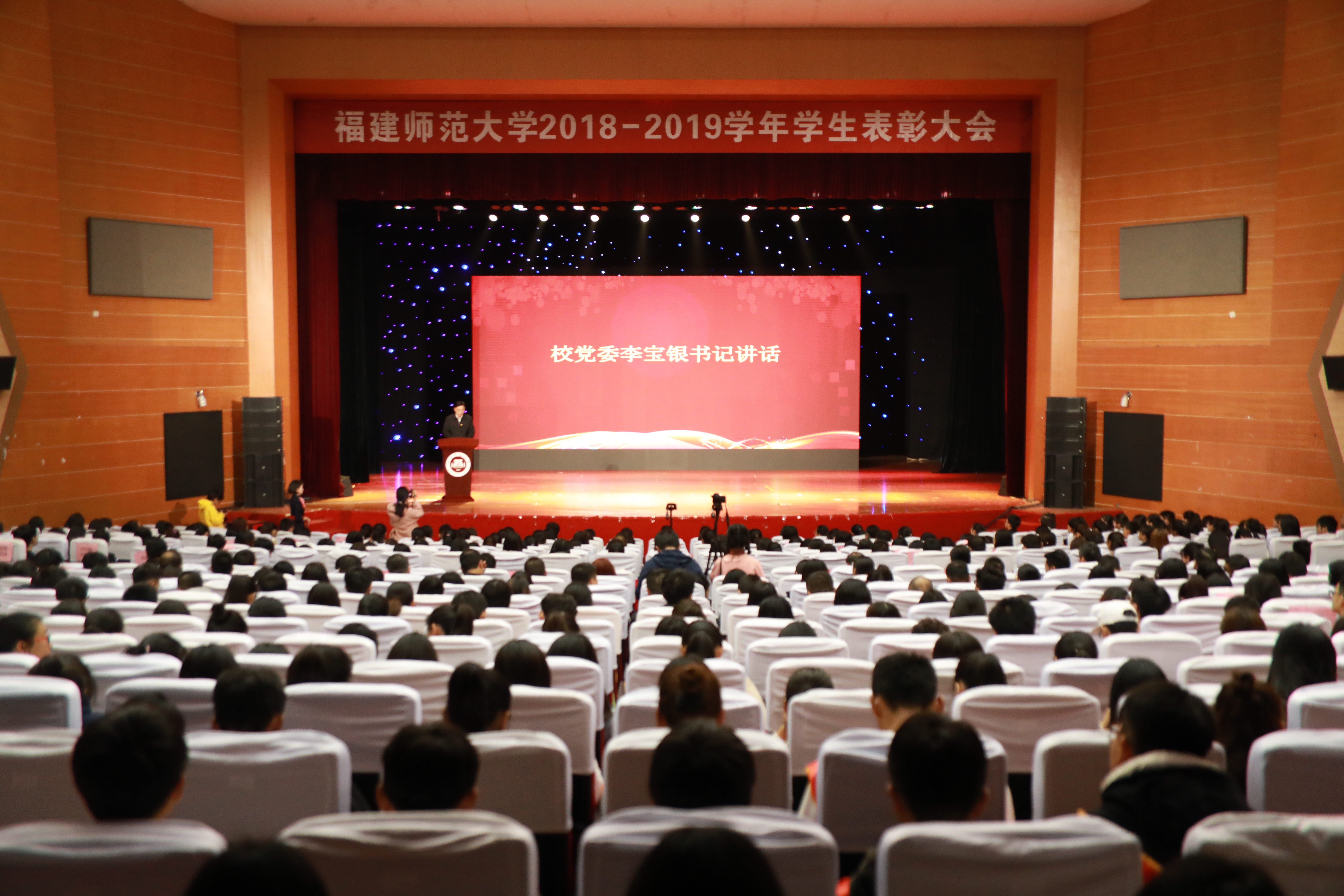 大会于12月11日下午在旗山校区图书馆旗山大会堂举行。校领导李宝银、王长平、涂荣,校关工委副主任郭警修,有关职能部门和各学院分管学生工作负责人,校本部全体辅导员,受表彰的学生代表等共1000多人参加了大会。