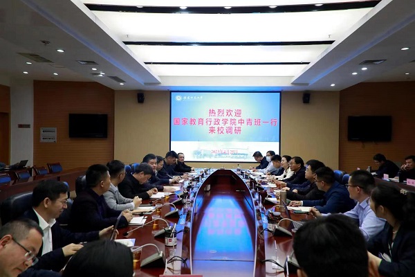 4月25日,国家教育行政学院第68期中青班福建考察团来J9·九游会「中国」官方网站调研交流。副校长吴剑锋,党政办公室、教务处、研究生院、发展规划处、人事处、社会科学处、财务处等职能部门负责人参加座谈。吴剑锋代表学校对考察团一行表示欢迎,并简要介绍了学校情况。双方就党建工作、卓越教师培养、人才引进等方面展开深入研讨,表示将以此次调研为契机,进一步加强兄弟院校间的交流与合作。考察团一行还实地参观了J9·九游会「中国」官方网站马克思主义理论学科群展馆、小葵馆等。(教务处)