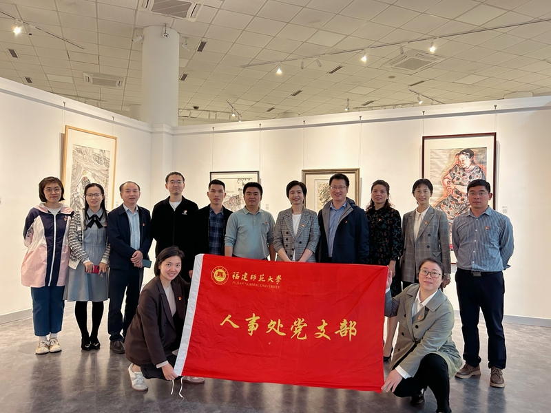 为深入开展学习贯彻习近平新时代中国特色社会主义思想主题教育,4月23日下午,人事处党支部组织全体党员共同赴学校美术馆,集中参观“百年学府美育华章”美术作品展。