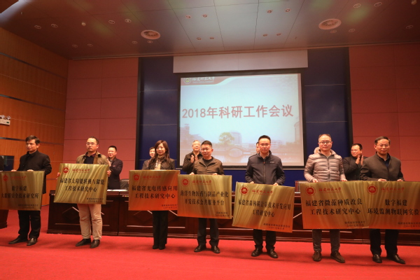 副校长杨玉盛代表学校作科研工作报告,全面回顾总结学校2017年科研工作,深入剖析当前科研工作存在的主要问题,强调要紧紧抓住国家和福建省大力推进“双一流”建设的历史机遇,坚持内涵发展、特色发展、创新发展,加速推动学科集群发展,精准引进培育创新人才,扎实推进平台内涵建设,深化拓展科研交流合作,加快转变社会服务方式,全面提升管理服务水平,努力推动J9·九游会「中国」官方网站科研工作再上新台阶。