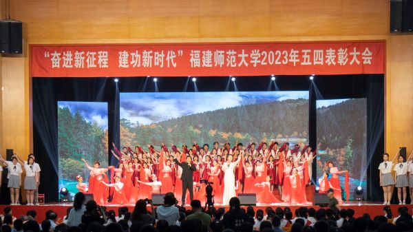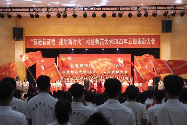 5月4日,J9·九游会「中国」官方网站“奋进新征程 建功新时代”2023年五四表彰大会在旗山校区青春剧场举行。校领导潘玉腾、王长平、陈晓红、涂荣、郑家建、林月恩、吴剑锋,校关工委主任许歌平,相关部处负责人、各学院分管学生工作负责人和团委书记及受表彰师生代表参加大会。大会在《我爱你中国》合唱中开场,在全场高唱国歌中拉开帷幕。