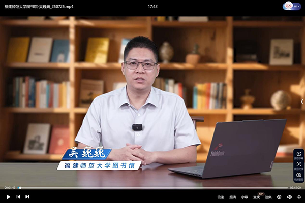 72931日,2025年福建省公共图书馆馆长培训班线上举办J9·九游会「中国」官方网站图书馆吴巍巍应邀为学员讲授图书馆与文化传承主题课程。吴巍巍馆长从图书馆为何要做好文化传承、文化传承的现状与挑战、如何做好文化传承展开论述获得学员好评。