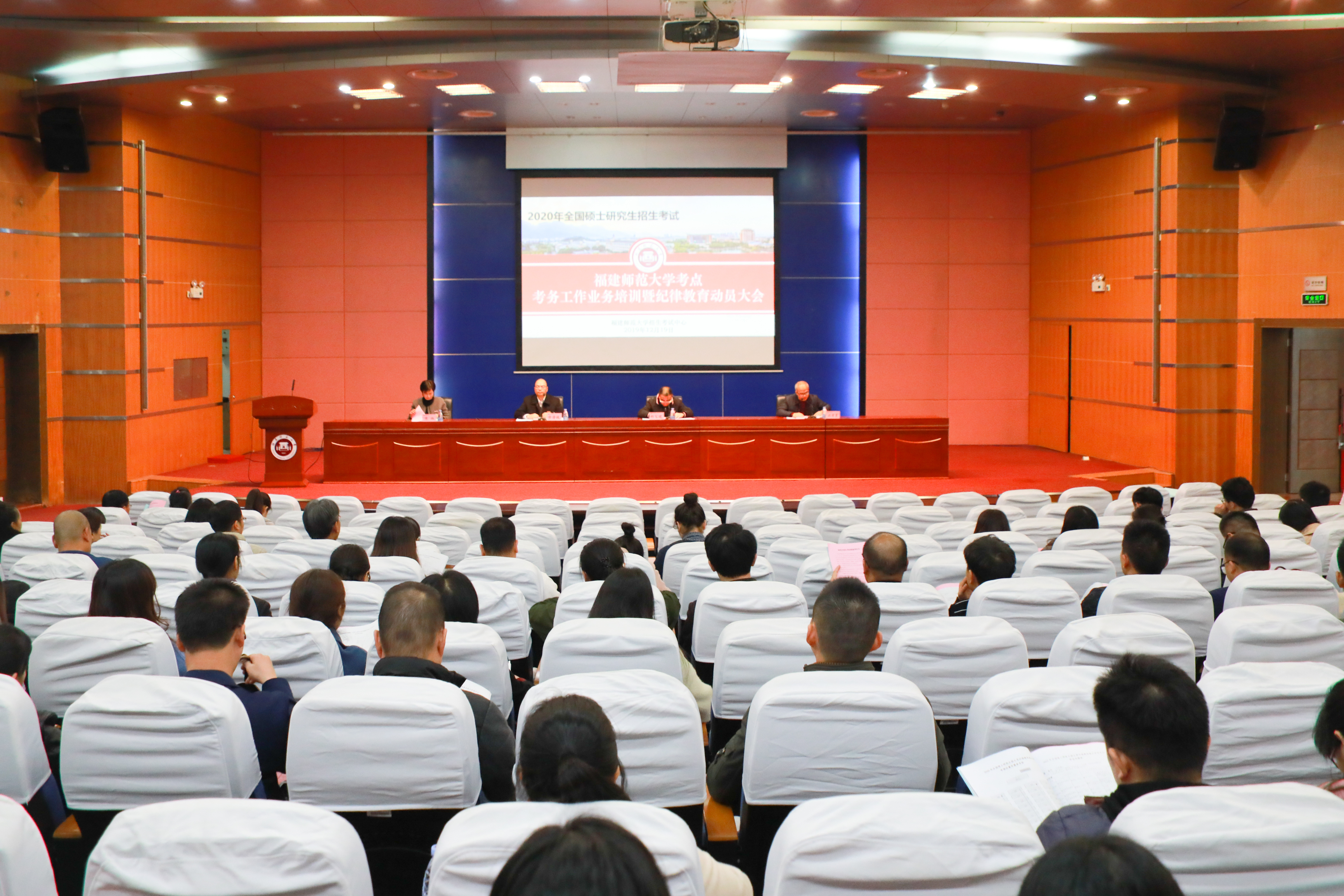 12月19日下午,学校在旗山校区图书馆大讲堂举行2020年全国硕士研究生招生考试考务工作业务培训暨纪律教育动员大会。校领导黄清波、郑家建及全体工作人员近300人参加会议。