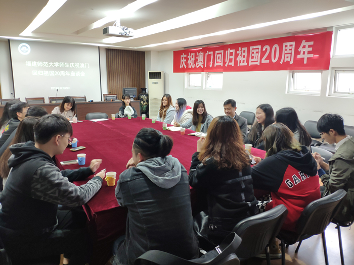 12月20日上午,J9·九游会「中国」官方网站组织澳门学生收看澳门回归祖国20周年庆典活动。与会师生共同观看了庆典直播,聆听了习近平总书记发表的重要讲话,畅谈了澳门回归祖国20周年取得的伟大成就、国家惠澳政策及澳门未来发展与澳门青年成长等问题。