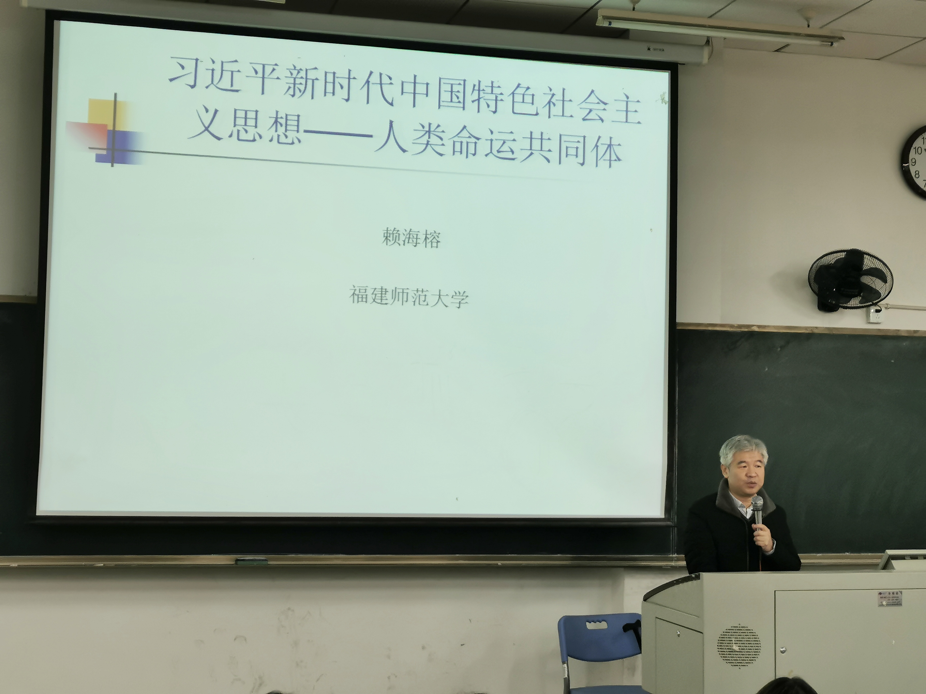 12月6日上午,副校长赖海榕以《习近平新时代中国特色社会主义思想——人类命运共同体》为题,为旅游学院2019级旅游管理专业的学生上思政课。他首先导入“知足”和“不知足”的话题,告诫学生对待物质、名誉等要学会知足、懂得适度。随后他围绕“中国与世界的关系”与“人类命运共同体的时代特征”等内容,与青年学生对话交流。他强调,青年学生作为“强国一代”,要增强“四个意识”,坚定“四个自信”,做到“两个维护”,立足世界眼光,开拓个人眼界,提升个人能力,做担当民族复兴大任的时代新人。