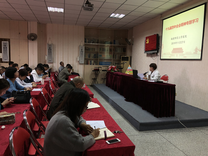 一是全员学习全覆盖。11月25日,校医院党总支会议传达和部署学校关于学习贯彻党的十九届四中全会精神的通知,按党总支、党支部、全体教职工三个层面学习贯彻全会精神,实现全员学习全覆盖;12月4日邀请学校讲师团成员林旭霞教授为全体教职工作《编纂﹤民法典﹥ 保障人民权利》专题报告;12月16日党总支中心组理论学习以集中学习研讨的方式,中心组每位成员汇报学习体会,并形成学习心得;12月25日前,6个在职教工党支部完成了支部党日活动的主题教育学习,均采用集中学习研讨的形式,每个党员谈体会说感想,交流思想,真正把全会精神学进去、说出来,实现学习入脑入心。